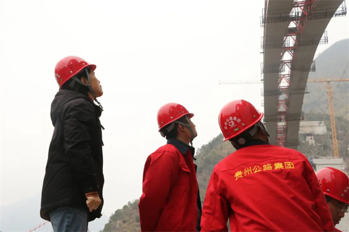 张胜林查看乌蒙山大桥主拱圈吊装施工情况