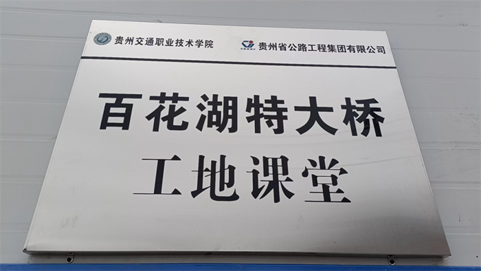 2023年4月20日,贵州公路集团与贵州交通职业技术学院签订“校企深度融合共建‘贵安三标百花湖特大桥’协议”,将百花湖特大桥项目建设作为“工地课堂”,以“项目部”为合作主体,共建“贵安扩容三标百花湖特大桥产教融合实践基地”,共同培养素质高、技能强的应用型高级职业人才,持续深化实践“一桥一课一团队”喀斯特山区高墩大跨桥梁建造技术技能人才培养的需求。