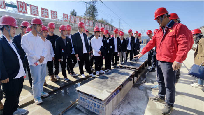 期间学生们提出了不少问题,“施工现场的温度如何影响承台的浇筑质量?”“混凝土浇筑有哪些要点?”等等,面对学生的提问,吴云一一耐心解答,大家认真聆听,现场交流讨论氛围浓厚。