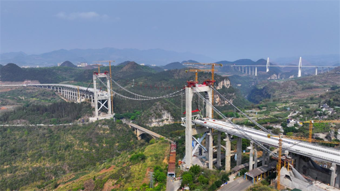 3月31日15时,随着黔西南州金州大桥义龙岸J22节段钢桁梁精准吊装就位,由贵州公路集团第六工程有限公司承建的金州大桥项目首节段钢桁梁吊装成功。