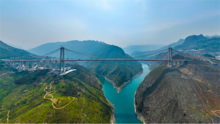 碧绿的牂牁江之上,贵州造桥团队用集体的智慧竭力托起一座世界级桥梁,纳晴15标建设团队积极围绕生态环保要求高、高墩混凝土泵送难、高空施工难度大等多个难点问题,探索创新了“2m×4m”大跨径特制贝雷片支架系统、中大跨径钢混组合梁斜拉扣挂顶推施工技术、高强度镀锌铝稀土合金密封钢丝绳吊索等5项重大科研创新,单台天车双吊索平衡纵向运输施工方法、悬索桥缆索施工多功能高效牵引系统,以及主墩墩柱模板底口应用止浆工艺、汽车吊配合龙门吊出渣工艺等20余项工艺工法,有效降低了施工风险、提升了施工效率,提升了工程建设品质。