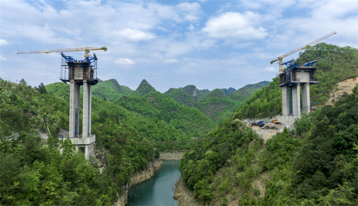 位于贵州平塘县境内的贵平高速13标施工现场,一幅绝美的春日画卷正在徐徐铺开。登高远眺,只见群山延绵不绝,绿树一望无际,春风拂过,绿意涌动;在这幅生机勃勃的画卷中,贵平13标包括漕渡河大桥在内的11座大桥,正就着满山的“绿意”,奋力生长。
