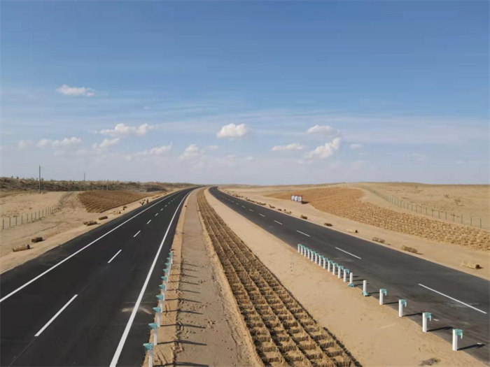 S21阿勒泰至乌鲁木齐高速公路(以下简称“阿乌高速”)向北穿越古尔班通古特沙漠、准噶尔盆地,打通乌鲁木齐市至阿勒泰地区的高速“直达”公路大通道,是新疆第一条沙漠高速公路。项目全长342.538公里,其中,阿乌高速2标由贵州公路集团第三工程有限公司承建,全长34公里。