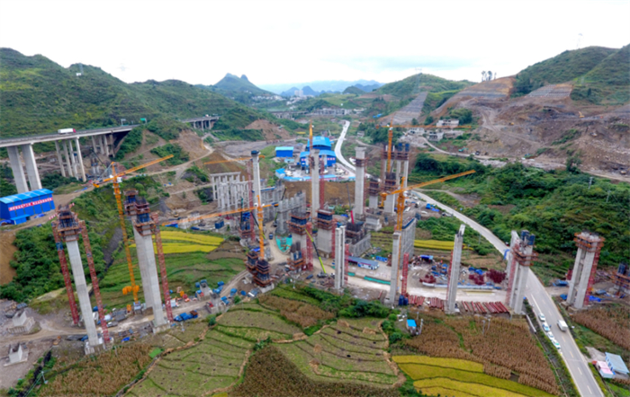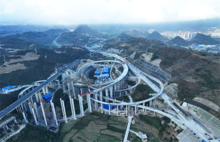 导读:在安顺市关岭布依族苗族自治县西侧的群山之中,盘旋着一条钢筋混凝土“巨龙”,从高空俯瞰,宛若一颗跃动的心脏,连接着四通八达的“血管”。每天,数以百计的建设者在这里忙碌穿梭、挥洒汗水,只为早日建成贯通,它就是由贵州公路集团第三工程有限公司承建的六安4标重点控制性工程——顶云枢纽互通。