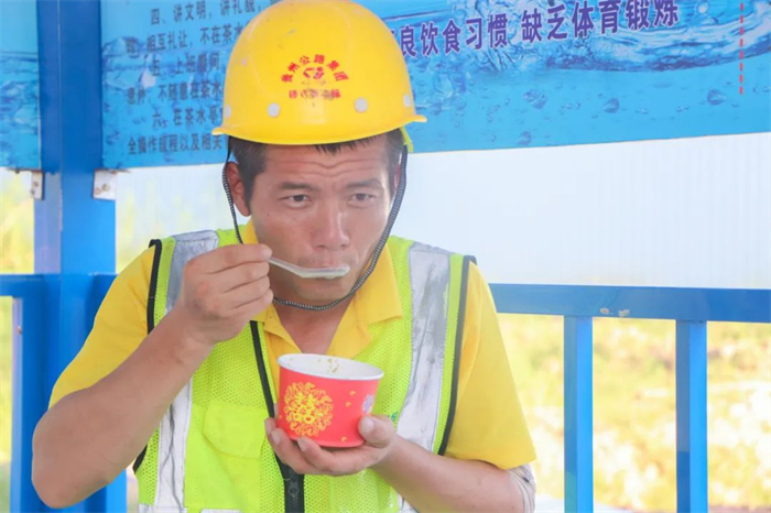 8月的重庆,热浪滚滚,阳光如同火炉一般炙烤着大地。第六工程公司奉建项目将工作时间调整为6时至11时、15至19时,避开了最炎热的时段。下午上工前在食堂增设防暑餐,特别准备了凉粉、凉面、冰甜酒汤圆以及西瓜等清凉食品,不仅能缓解暑热,还能为大家补充能量,帮助职工更好地应对炎热天气带来的体力消耗。