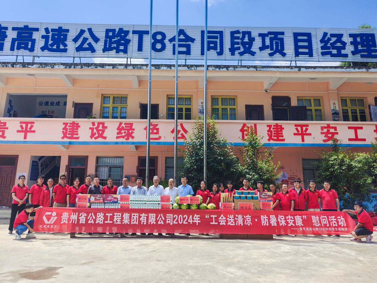8月21日,贵州公路集团党委委员、纪委书记张德顺到第九工程有限公司承建的贵平8标开展“工会送清凉 防暑保安康”慰问活动。