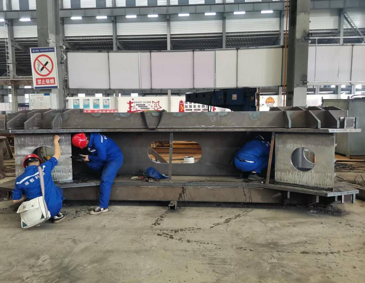 在制造过程中,产业园制造团队技术人员对原材料、焊接工艺、质量控制等各个环节进行了严格把控。截至目前,百花湖大桥桥梁钢板原材已提料6580吨,到位5847吨;原材复验按照抽检频率已送检47组,焊材送检6组,送检原材复验结果均为合格率100%;混凝土主梁斜拉索索导管共需37.5吨,目前场内已经制造21.1吨,L15-L25已发运至现场;钢锚梁牛腿正在进行8个部件的组焊工作,预计10月10日前将全部发运现场,后续每8天一个节段,整体工期满足要求。