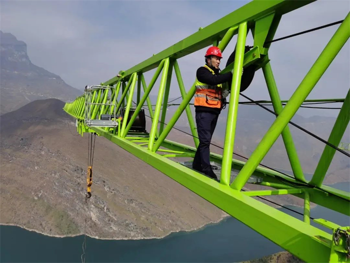 龙尚成研究的“一种桥面移动吊架装置”,看似结构简单,却蕴藏着“独门秘籍”,不但工作效率高,还大大节省施工成本。2018年夏天,六盘水至威宁高速公路TJ15合同段李子沟特大桥六盘水岸引桥的钢管桩贝雷梁支架60多米高、重达400余吨单件1.631吨,再加上桥面海拔2100米、最大风力达10级、两跨间地势陡峭等考验,如何顺利拆除成为横亘在施工人员面前的最大难题。若按照常规施工,采用汽车吊在桥面进行支架拆除施工或桥面预留孔吊装作业,成本高、风险大且工期无保障。多番思考后,龙尚成大胆提出利用施工现场的贝雷梁、型钢、卷扬机等材料机具,在桥面上组装一个移动吊架,将吊架置于桥面进行支架结构拆除。最后该方案得以实施,缩短了施工工期,降低施工安全风险,还节约施工成本60余万元。