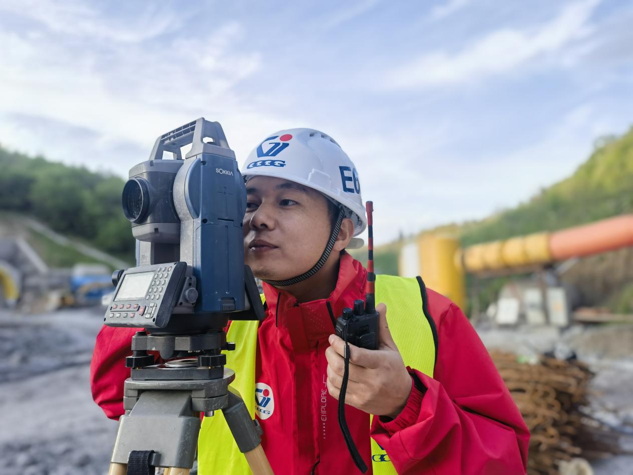 杨威进行隧道工程测量工作
