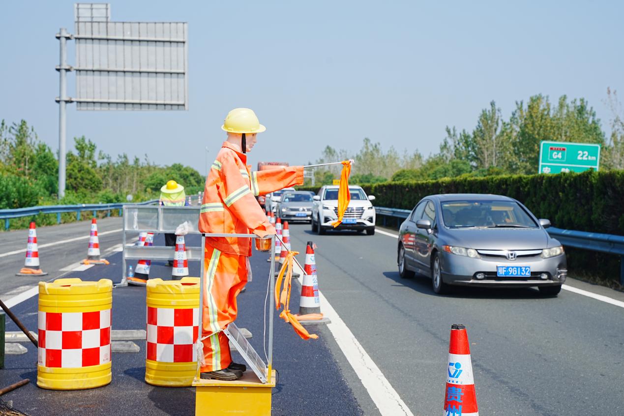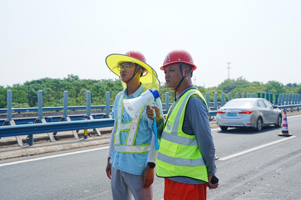 在引导社会车辆通行上,项目部根据当天施工点和作业区封闭长度,合理划分区域,安排专人负责该区域的保通工作。除了引导社会车辆快速有序通过,还会再发生拥堵或者其他异常情况时疏导交通,维护好交通安全设施。“比如遇到汽车追尾等突发事故,现场安全管理人员或者值守人员会在拍完事故现场照片后,第一时间将事故车辆移到我们的封闭区内,保障其他车辆正常通行,避免发生二次事故。”尹波说。