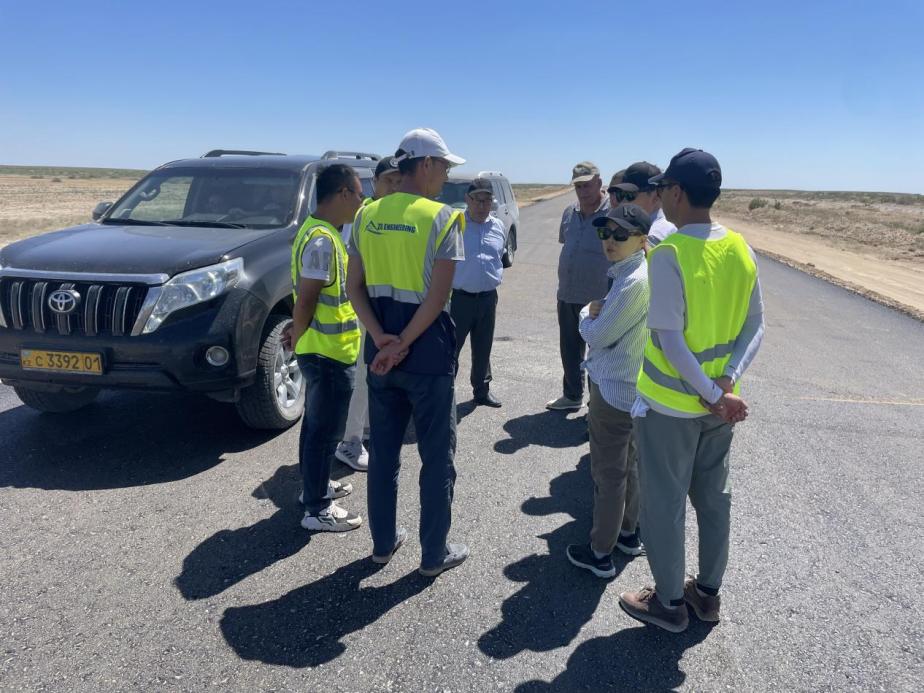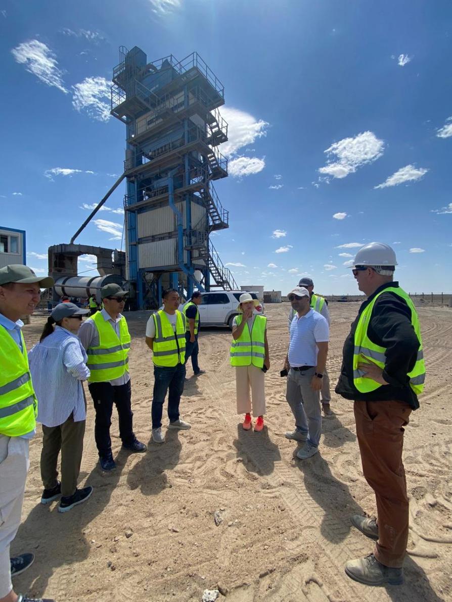 克孜勒奥尔达州公路局局长朱尼索夫带领项目监理一行来到克热5标沥青中面层施工现场,检查当前项目的施工质量、进度、安全等工作推进情况,现场点赞了项目的施工进度。