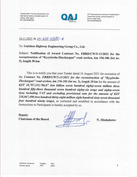 我们中标啦!今天正式签订了施工合同,这是贵州公路集团海外中标的第三个项目,更是我们首次挺进中亚交通基础设施建设市场!撒花~