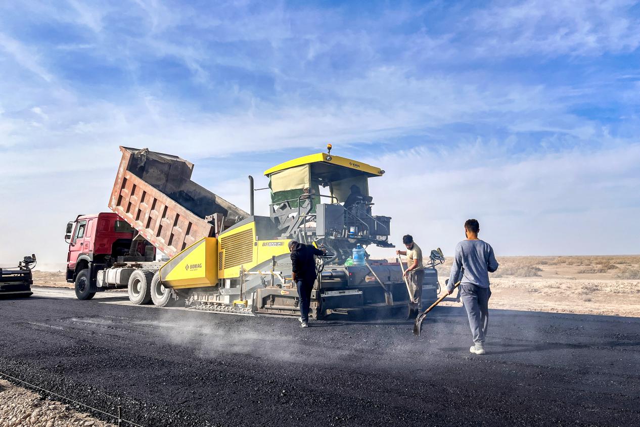 克孜勒奥尔达州公路局局长朱尼索夫在项目现场检查