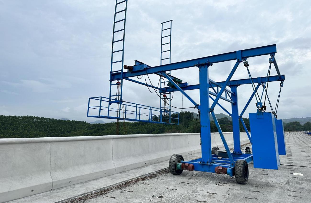 护栏模板安装采用模板台车吊装施工,提高模板安装质量,降低安全隐患