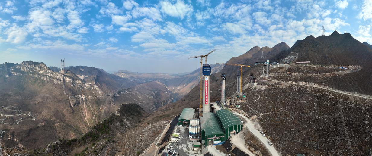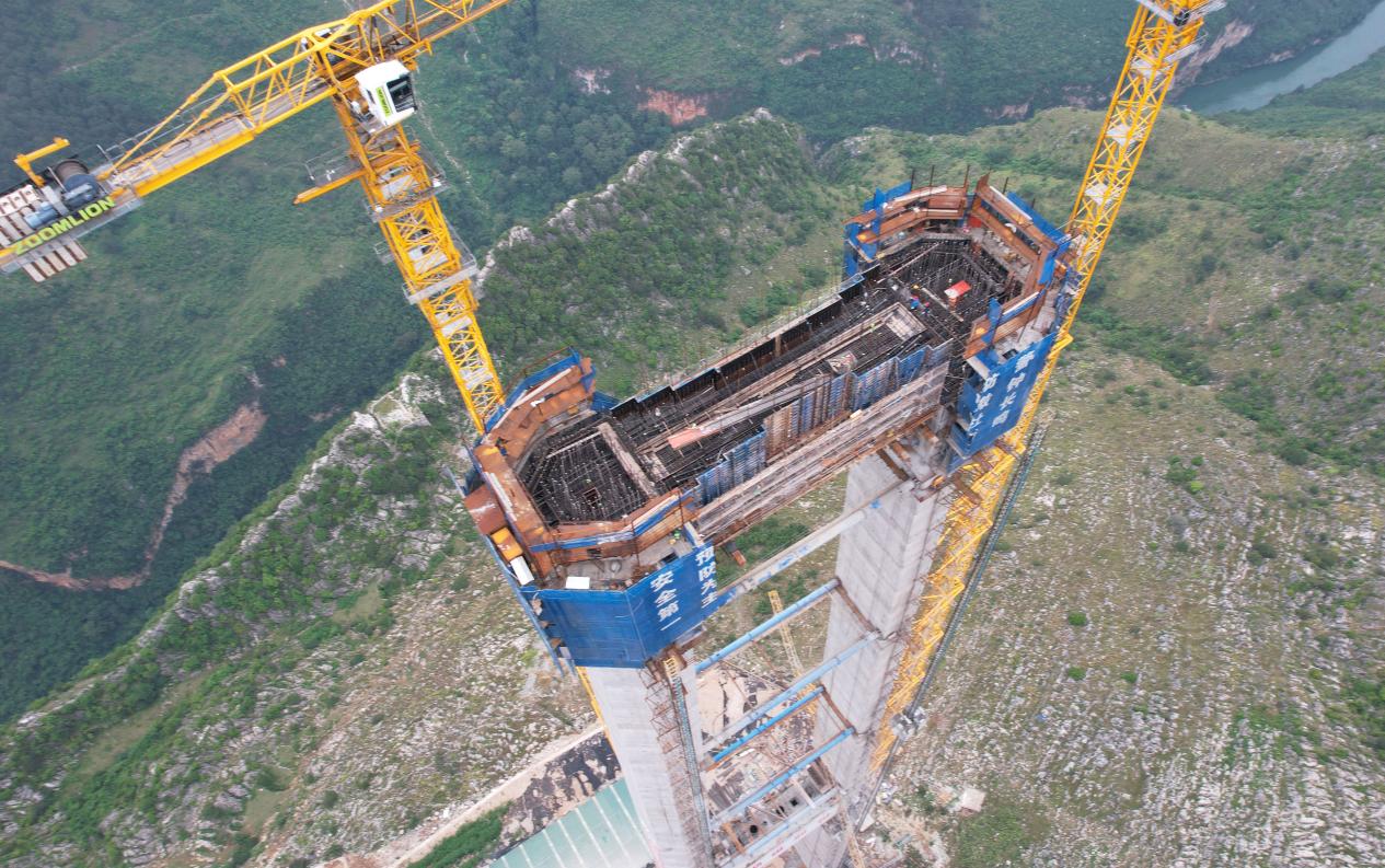花江峡谷大桥5号主塔突破200米。