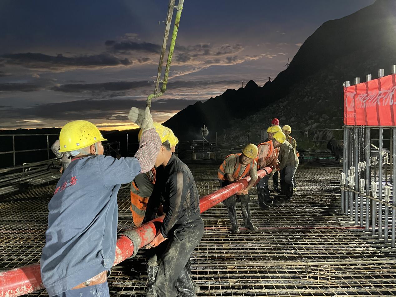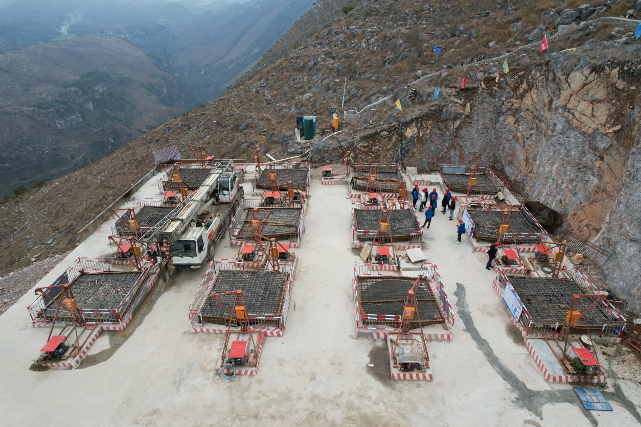 花江峡谷大桥5号主塔承台浇筑。