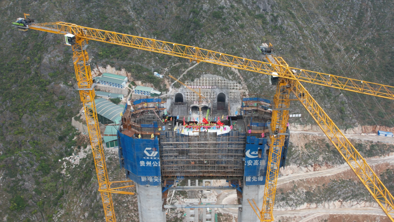 花江峡谷大桥5号主塔顺利封顶。