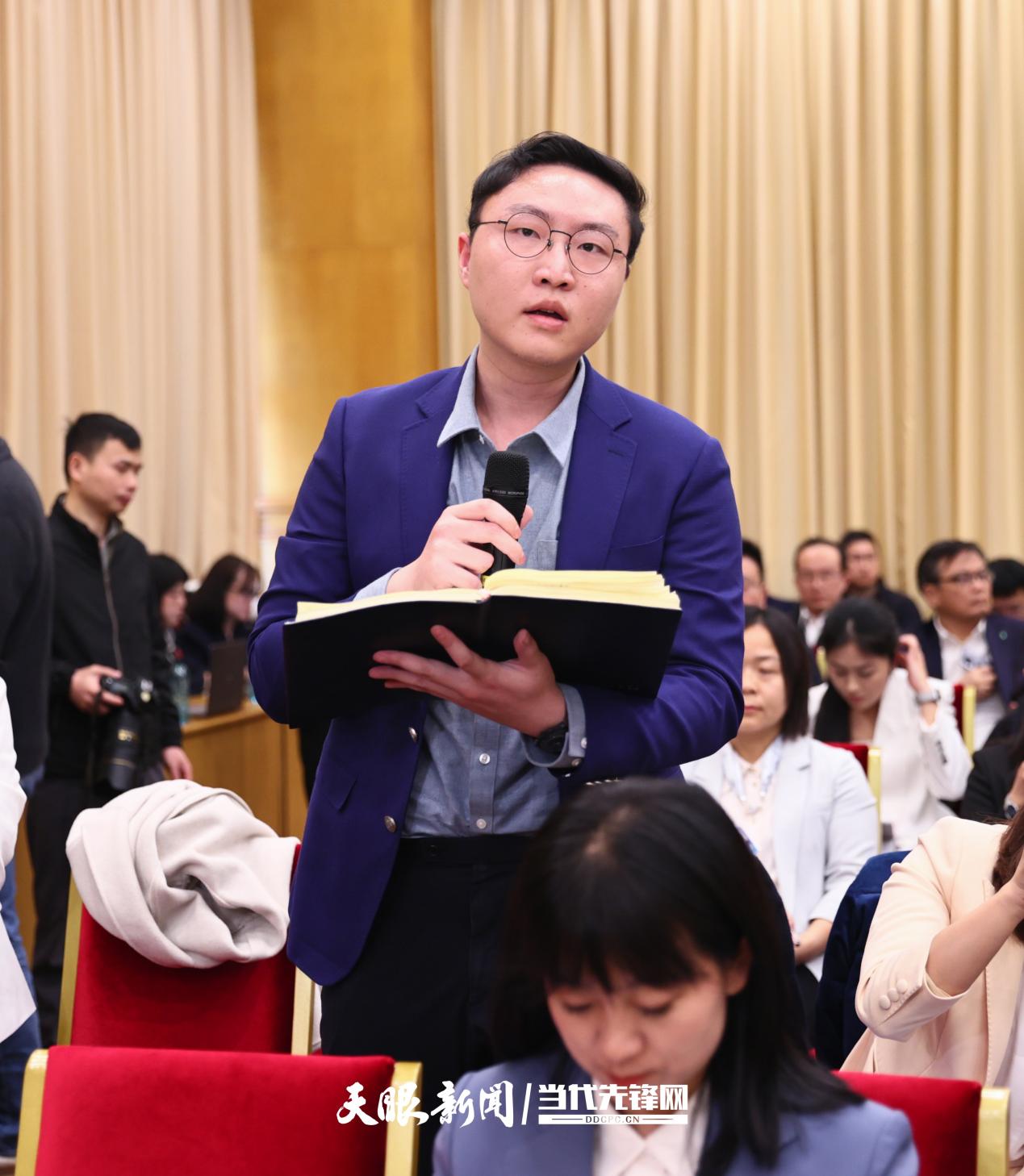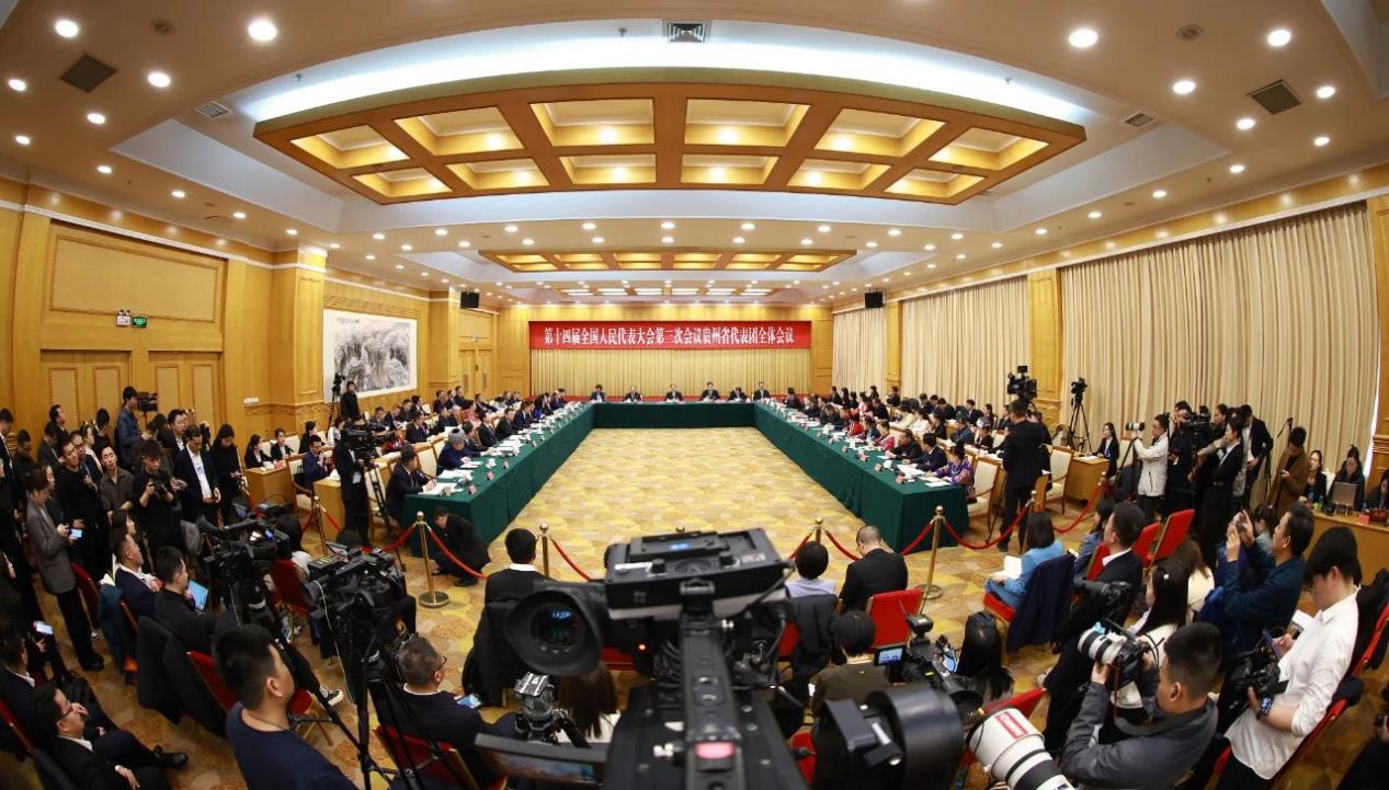 3月6日上午,出席十四届全国人大三次会议的贵州代表团在驻地举行开放团组活动,向中外媒体开放审议政府工作报告过程,并回答媒体记者提问。人民日报、新华社、中央广播电视总台、光明日报、经济日报、中国日报、农民日报、澎湃新闻、越南人民报等58家中外媒体124名记者前来采访。