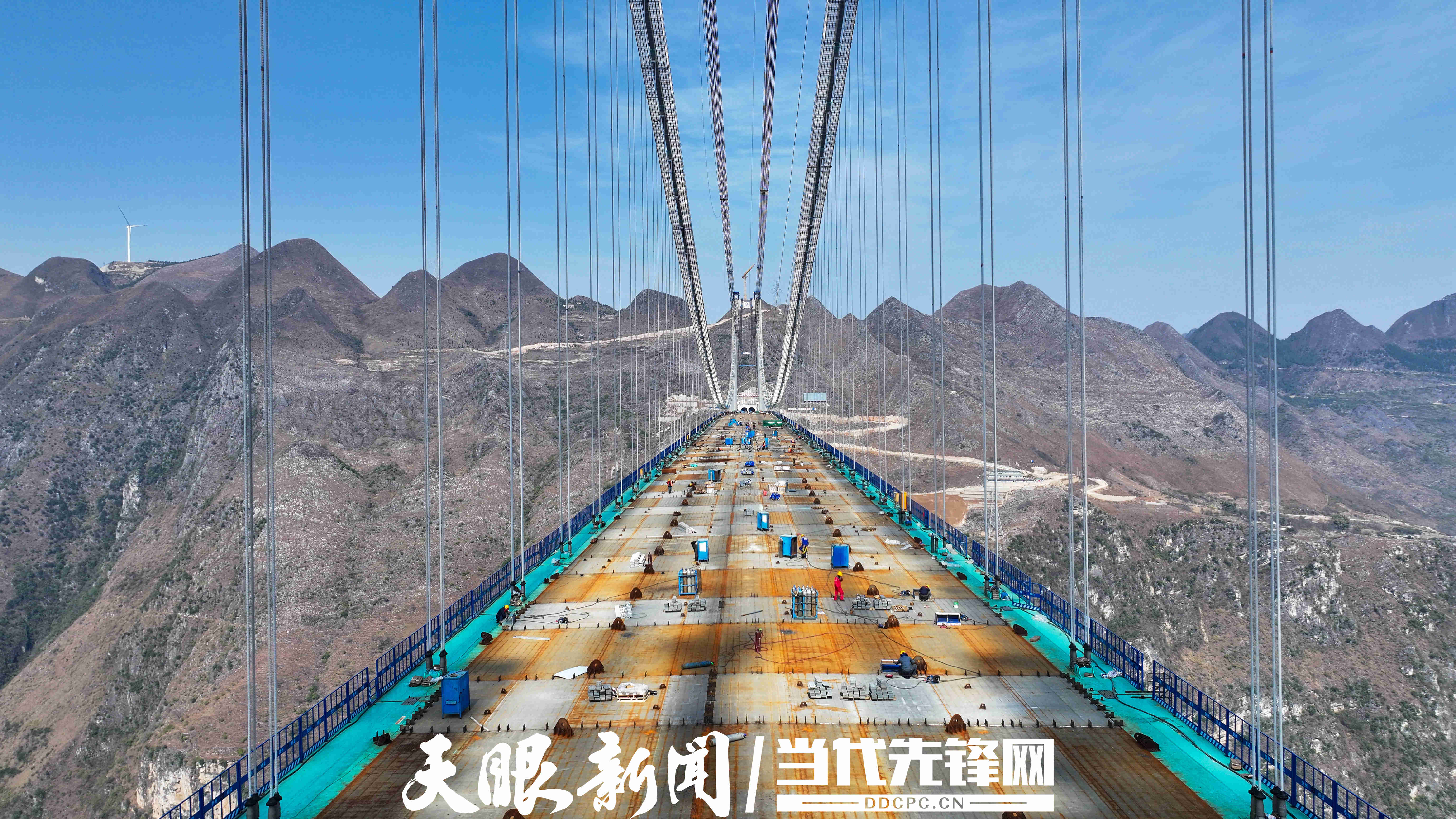 谢谢这位记者朋友!非常高兴向大家介绍贵州花江峡谷大桥这一“超级工程”的最新进展。这座桥梁不仅是我国交通建设的又一里程碑,也是新时代中国基建实力的生动缩影。