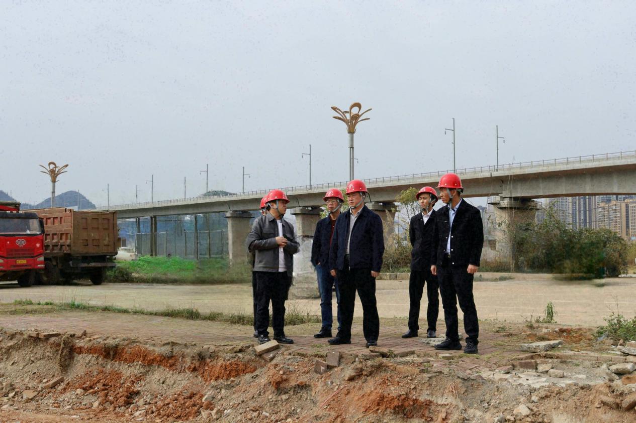 马白虎一行在金州大桥下拉槽段检查建设情况