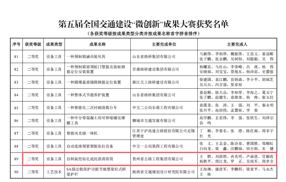 获第五届全国交通建设“微创新”成果大赛二等奖