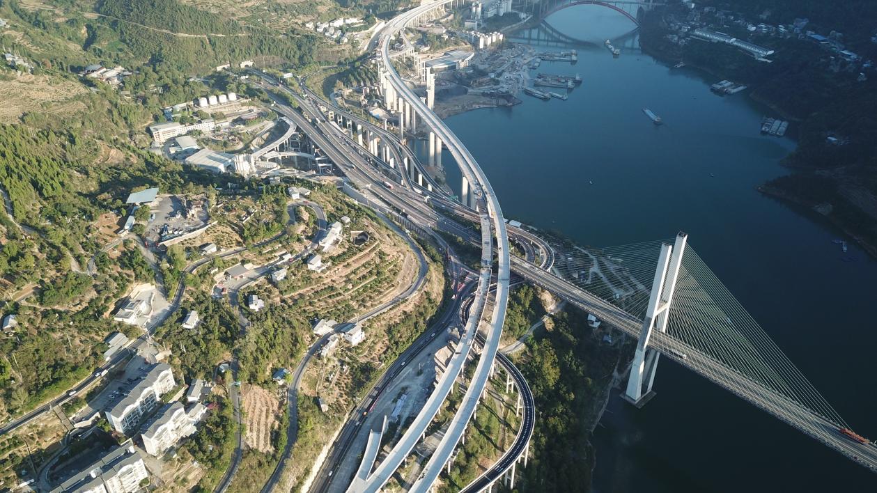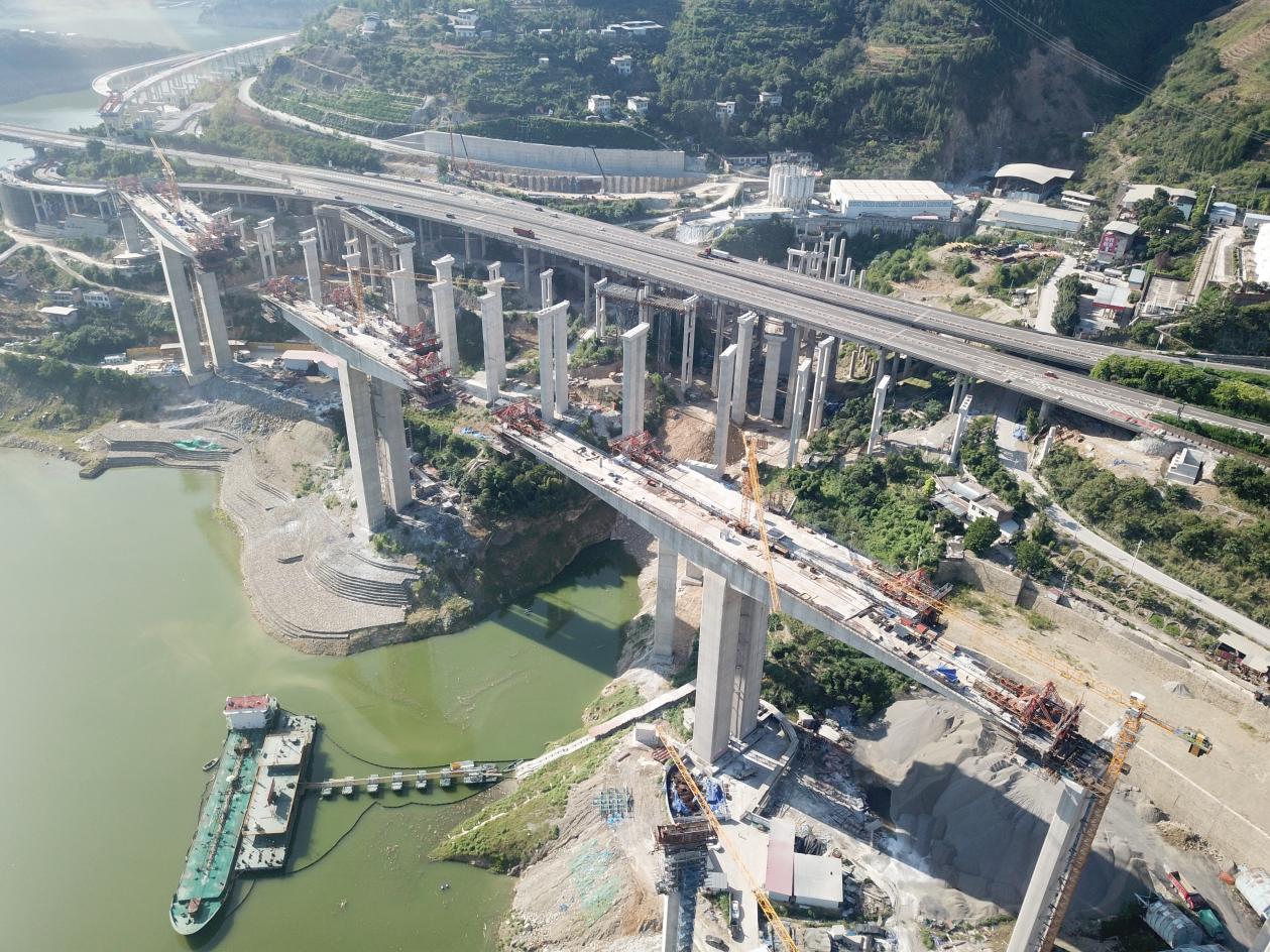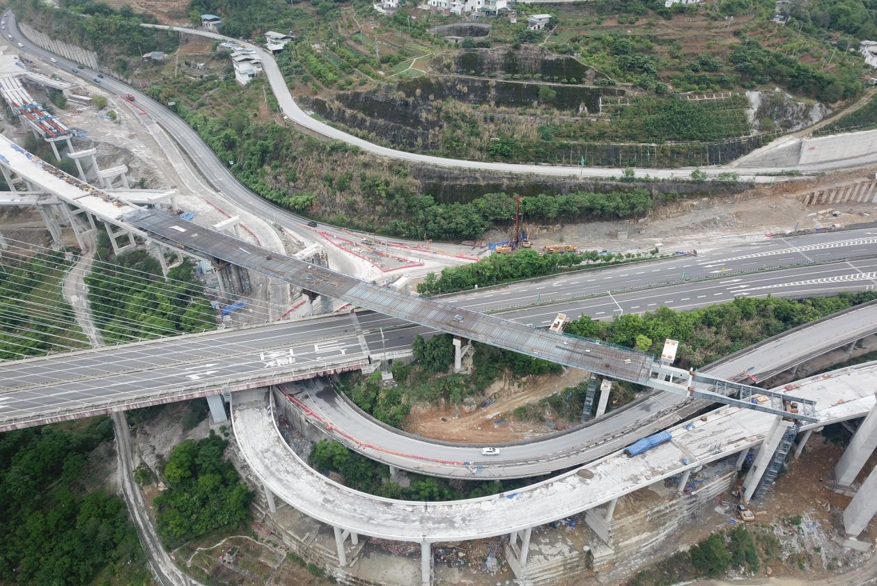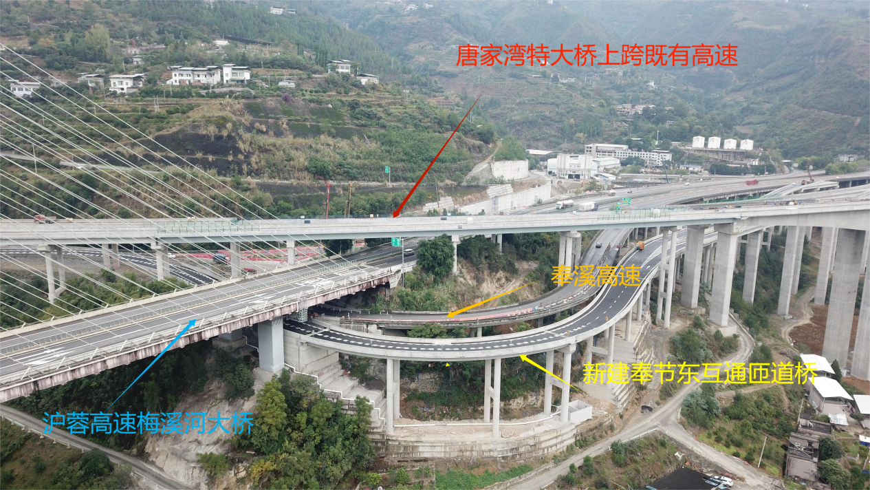 唐家湾特大桥上跨沪蓉高速、奉溪高速形成三层通行
