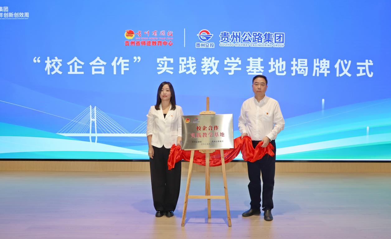 在大家的见证下,贵州公路集团与贵州省团校签署合作协议并揭牌“校企合作实践教学基地”。郭芯汝副校长表示双方将构建“工地与课堂双向赋能、理论与实践深度融合”的育人新模式,重点围绕实践教育基地共建、青年思想引领课程开发、科研项目联合攻关等展开深度合作。