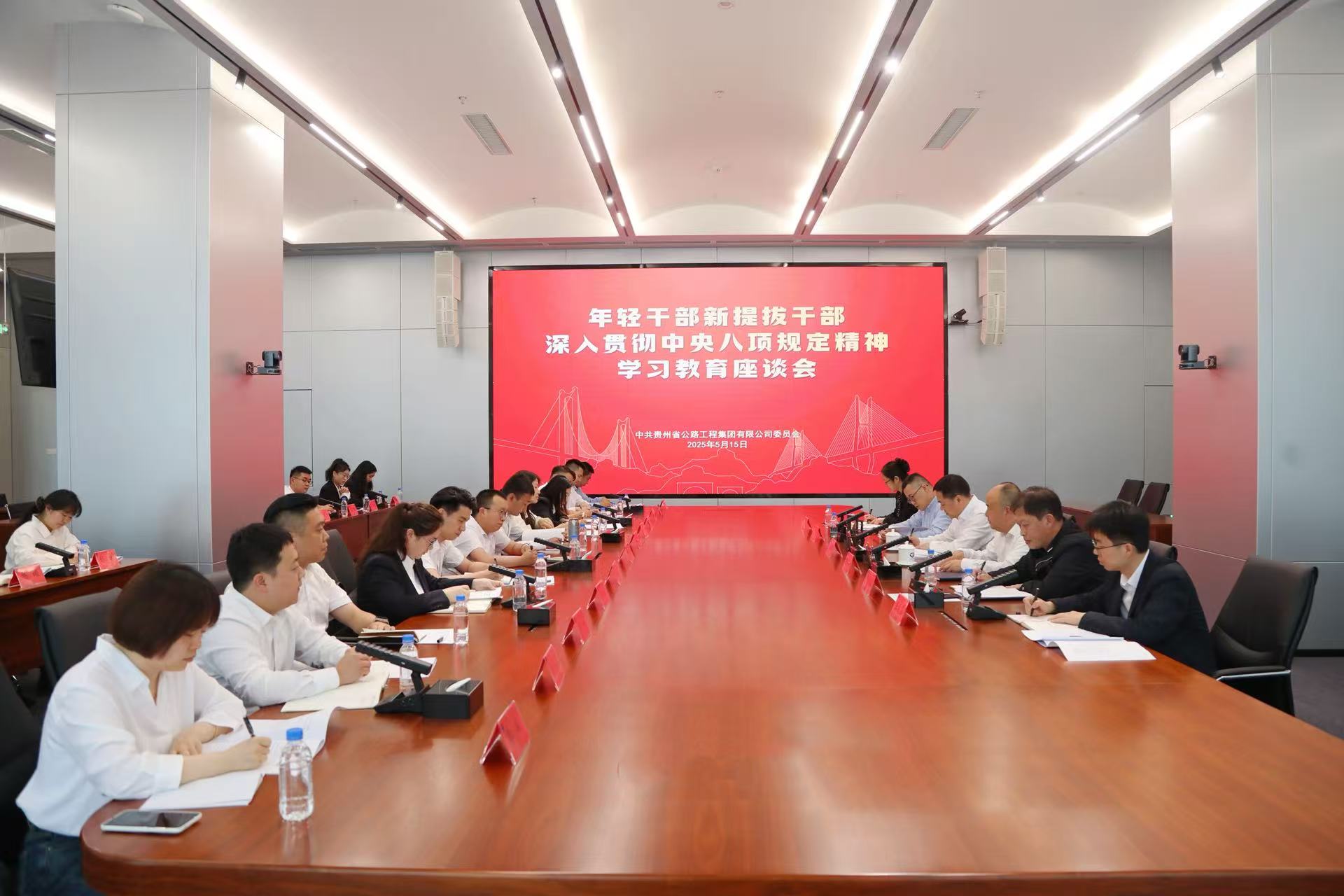 5月15日,贵州公路集团年轻干部、新提拔干部深入贯彻中央八项规定精神学习教育座谈会在贵阳召开。集团党委副书记、副董事长、副总经理(主持经营层工作)朱明聪出席会议并讲话,会议由集团党委委员、纪委书记张德顺主持。