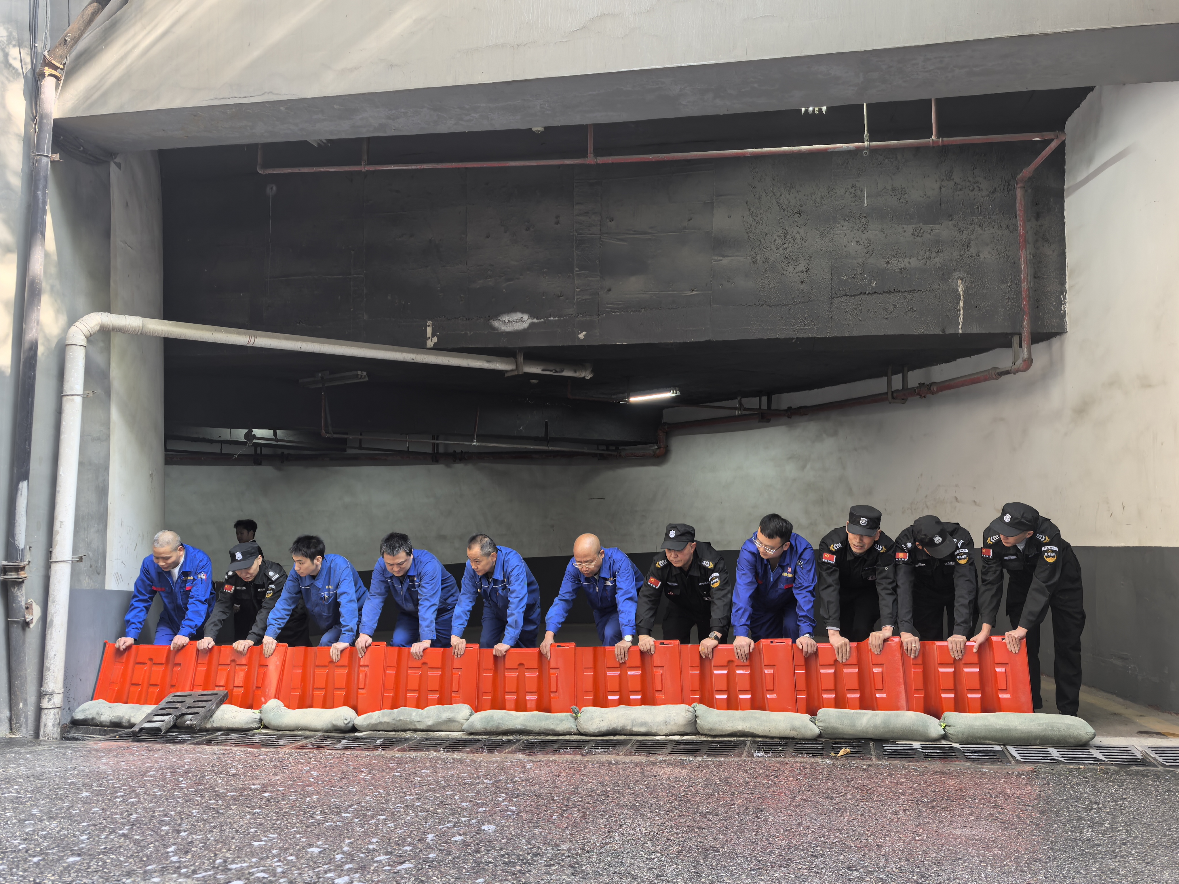 公司各管理处严格落实防汛责任,完善应急预案,开展安全巡检:重点清理楼面及地下排水口杂物、疏通地下车库排水系统、开展防水挡设施全面检修与加固工作、安装防洪闸板、储备应急物资、测试地下室强排系统、清除积水、加固园区树木及广告牌等高空设施等,防范极端天气风险。同时,还积极开展防汛应急抢险演练,提高全体员工应对汛期突发险情的实战能力。