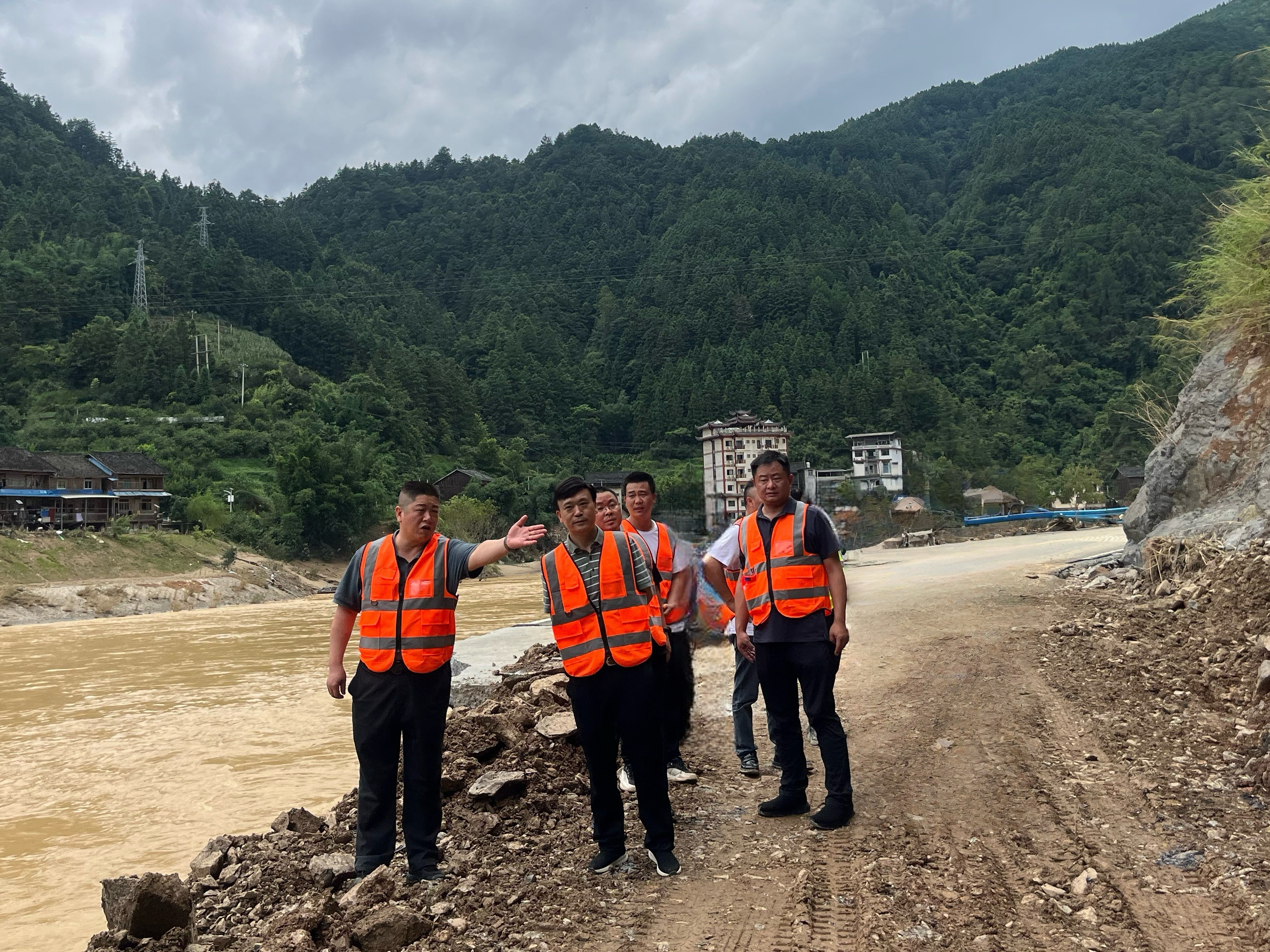 6月29日上午,突击队按照“设计先行、施工在后、科学抢险、安全优先”原则,前往G321国道兴华乡、定威乡段开展抢通作业。集团党委书记、董事长马白虎赶赴抢险现场,与队员共同作战。