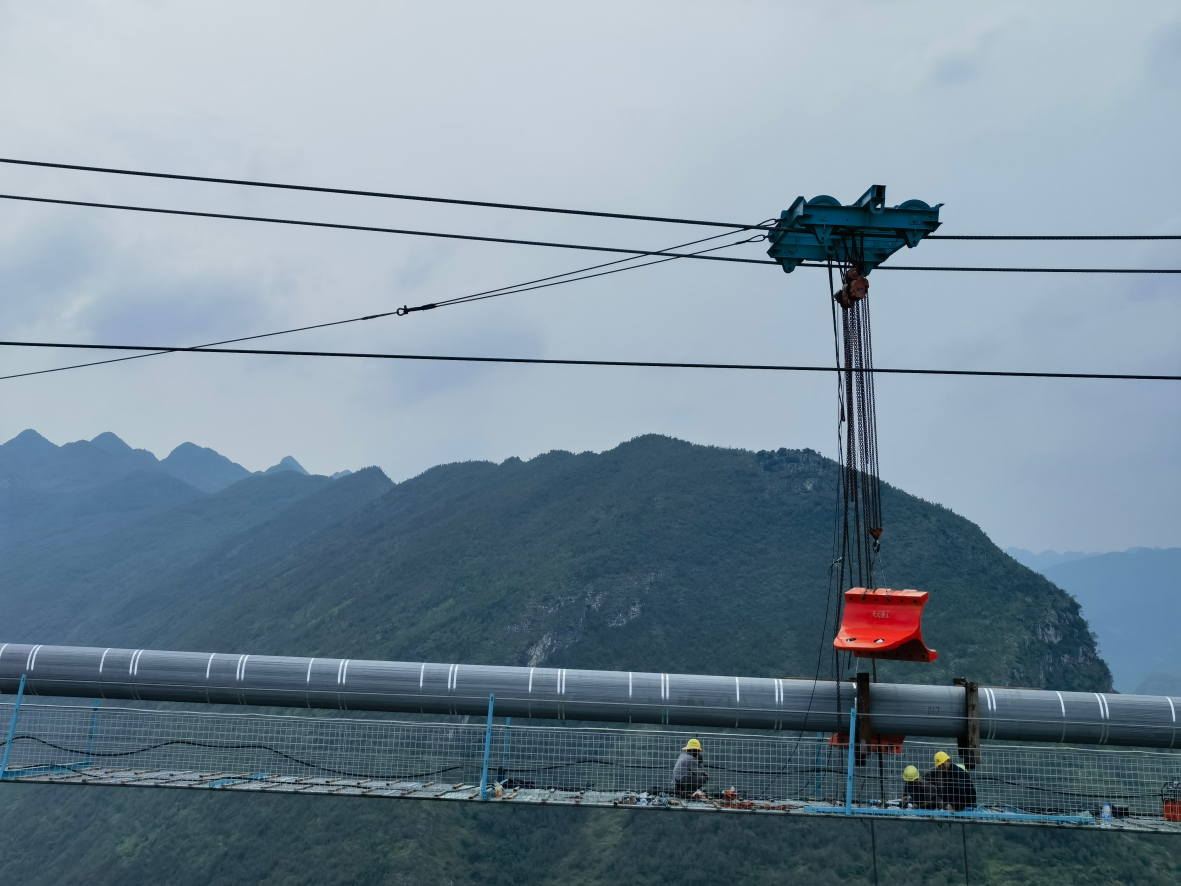 科技创新和产业创新是发展新质生产力的基本路径。贵州公路集团以“工装革命”践行科技创新,用“毫米级”微创新推动安全与效率升级。集团官微推出《创新微力量》专栏,聚焦一线“小装置”,揭秘巧思如何化解行业痛点。本期关注一项获得中国公路学会第五届全国公路微创新大赛金奖的“单台天车双吊索平衡纵向运输施工方法”,看它如何解决传统悬索桥吊索安装施工中的剐蹭难题。
