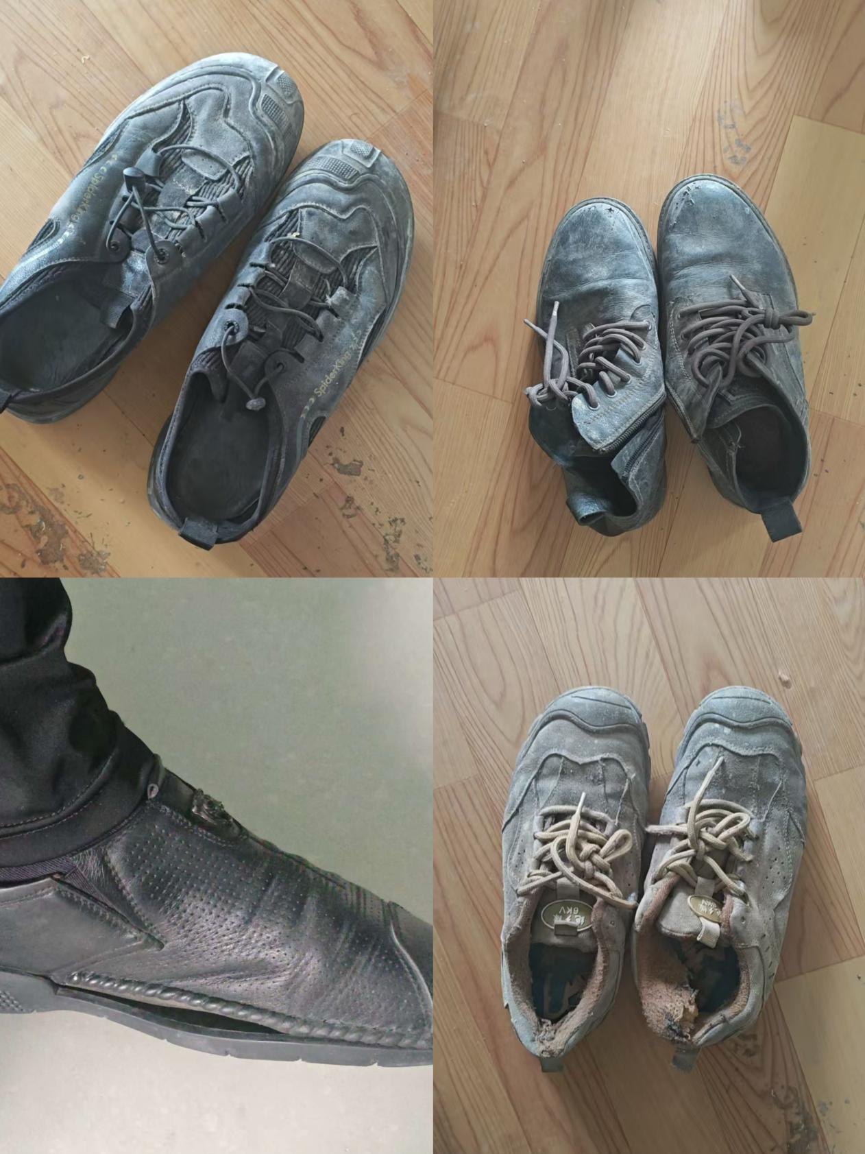 宋祝来到新疆项目后穿坏的四双鞋