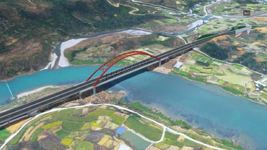 锦江特大桥转体T构采用挂篮悬浇+BIM模拟技术,钢箱系杆拱段运用内倾式提篮拱与步履式顶推工艺,保障跨铁路、跨江施工安全与进度。