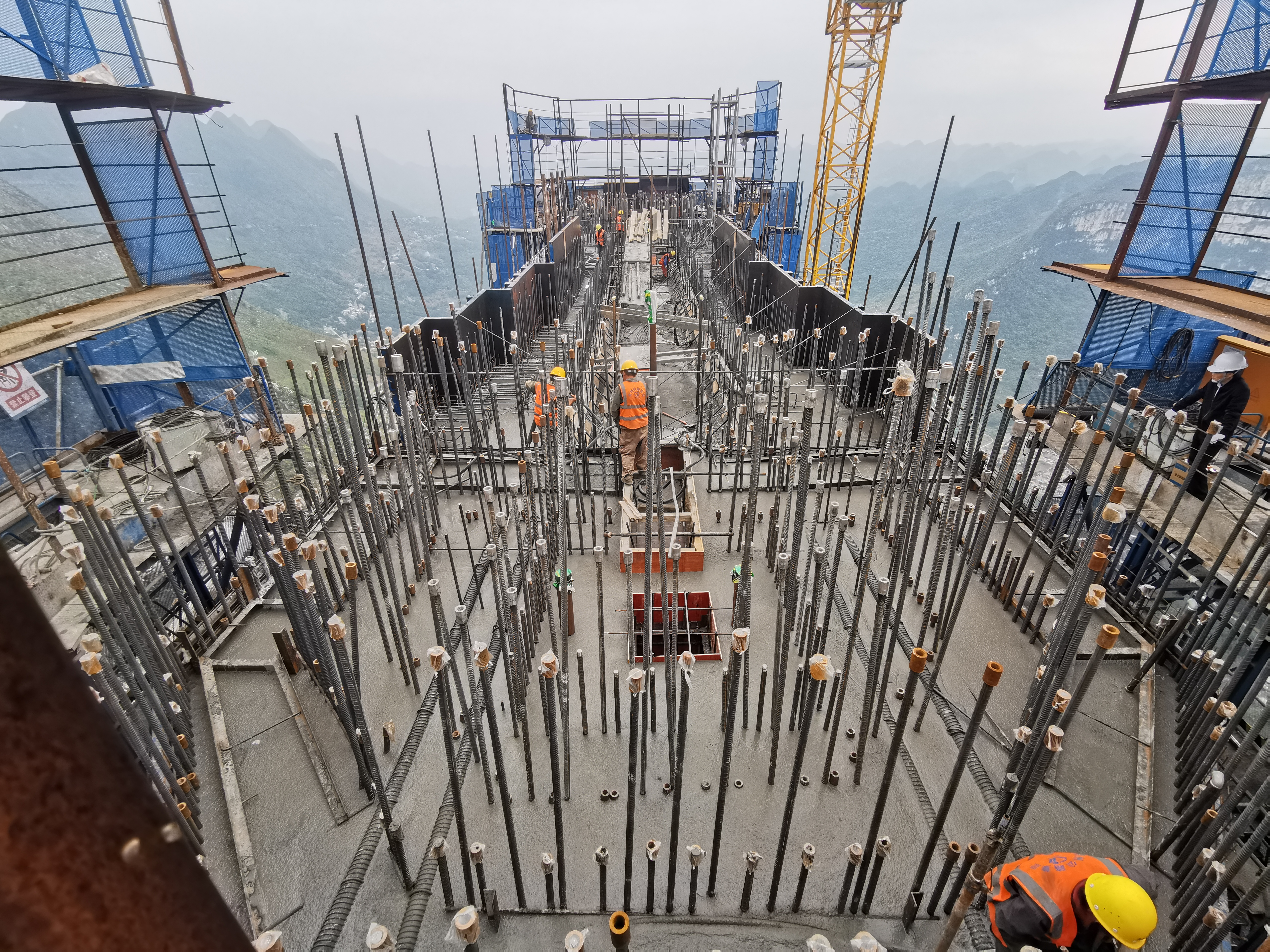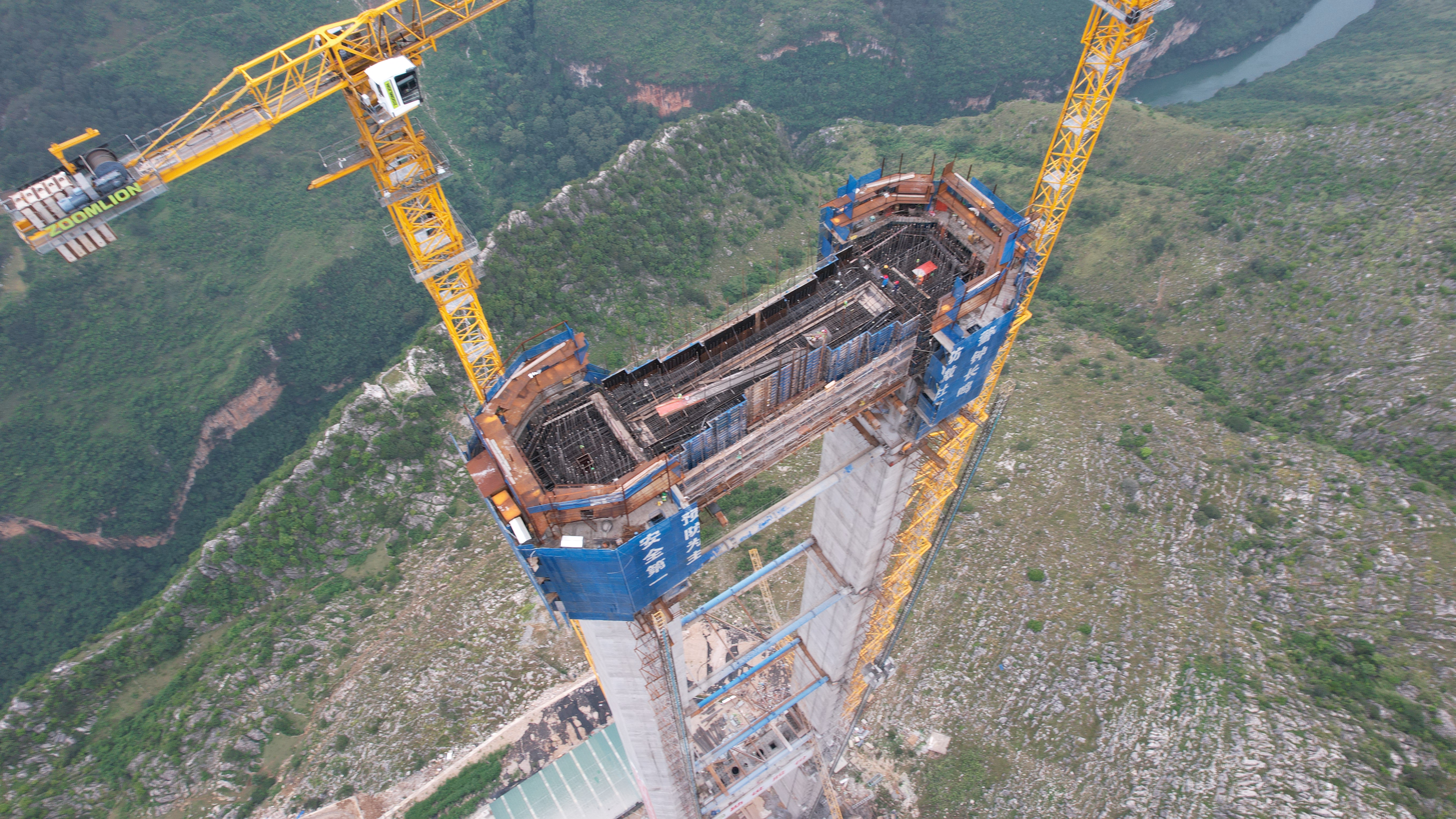 花江峡谷大桥5号主塔使用C55强度的混凝土,在贵州桥梁墩柱建造中尚属首次。