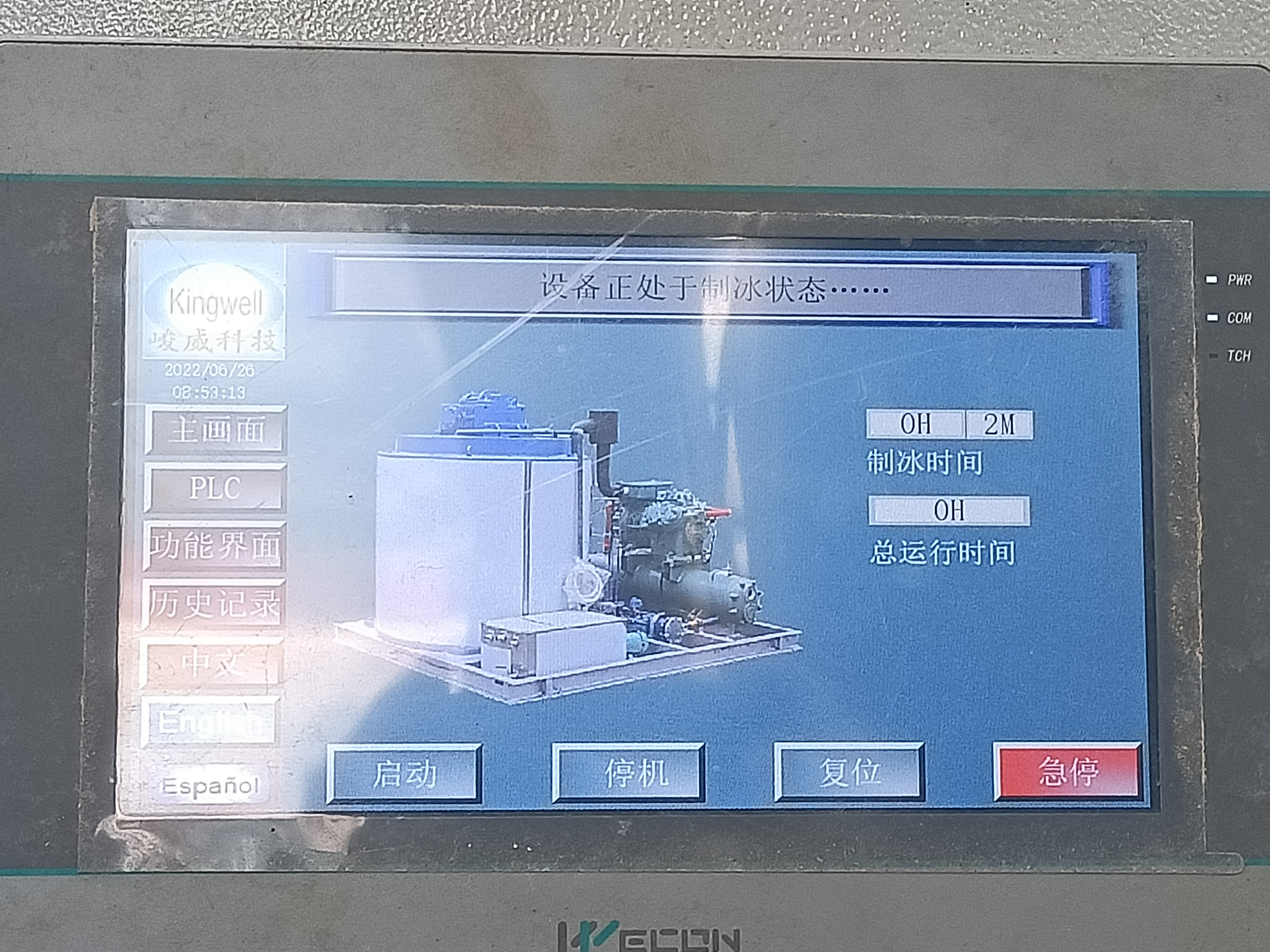 “智能片冰机”具有制冰速度快、节能、冰片干燥、降温效果好、操作简单等优点,将其安装于拌和站水槽上方,通过传感器感应水槽内水温高低,动态产生的细小片状冰直接落入拌合站水槽内,达到降低搅拌用水水温、控制混凝土浇筑前入模温度的效果。