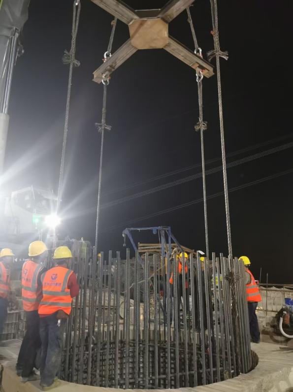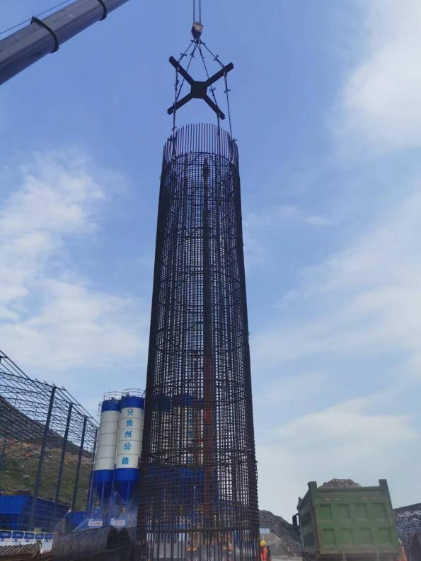 面对长、大、重的钢筋笼吊装难题,项目团队自制十字形吊具,由多根槽钢焊接组成直径4米的十字形结构,将多向受力转为垂直受力,有效防止吊点开裂,确保吊装过程安全可控。