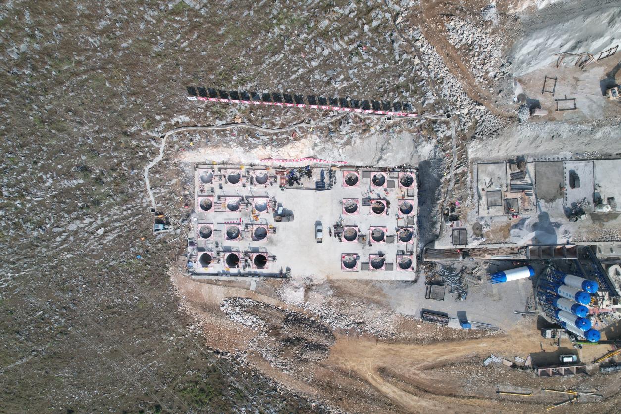 桩基施工期间,为有效控制大孔径桩基爆破产生的飞石,确保孔桩施工的安全性和可操作性,项目团队创新研发“大直径孔口一体式覆盖平台”。重达1.2吨的“锅盖”结构既能在爆破作业时有效拦截飞石,又可在暂停作业时作为孔口防护装置,防止人员坠落,真正实现一“盖”多用,显著提升施工安全性。
