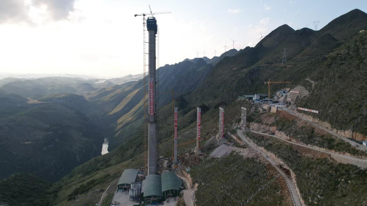 贵州公路集团参与建设的花江峡谷大桥六枝岸主塔高262米,是花江峡谷大桥的最高索塔。施工期间,项目团队接连攻克多项难题,历经674天的艰苦奋战,最终顺利完成花江峡谷大桥六枝岸施工任务。