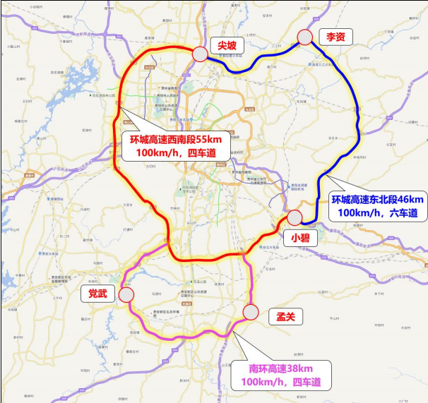 贵阳环城高速公路扩容工程是贵州省“强省会”战略中的关键交通基础设施,全线总长104.65公里,包含改扩建19.273公里,新建85.263公里。线路起自小碧,终至李资,串联孟关、花溪大学城、贵阳大数据科创城东、清镇东、朱昌、麦架、沙文北、牛场等节点,无缝衔接贵遵、贵黄、银百、贵阳南环等11条高速,承担加快市内循环、对外辐射和过境分流三重功能。