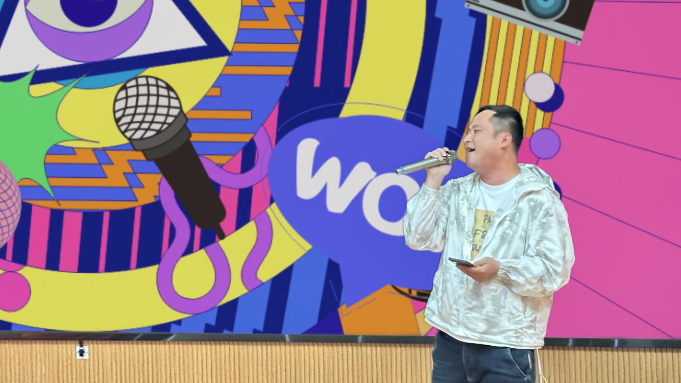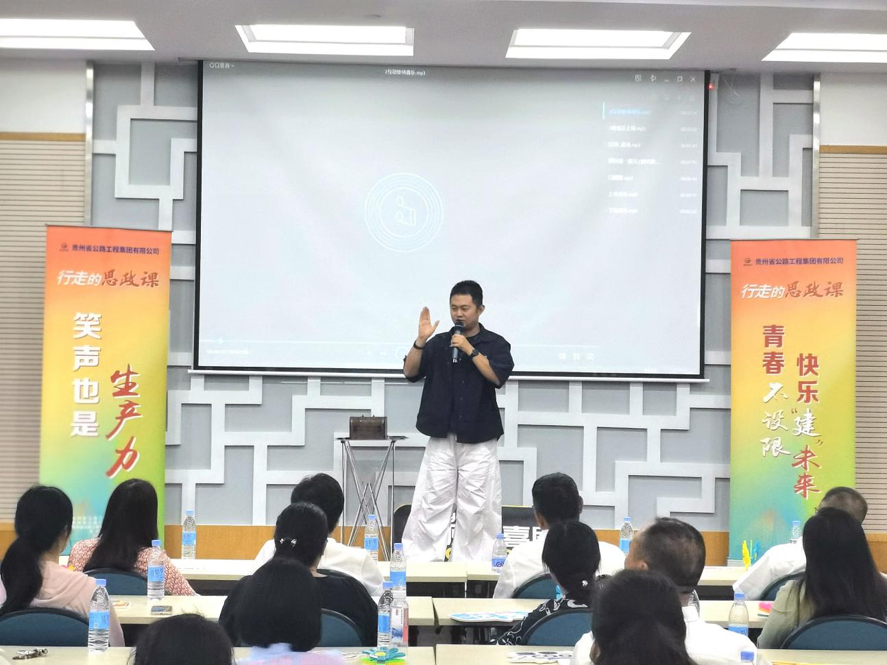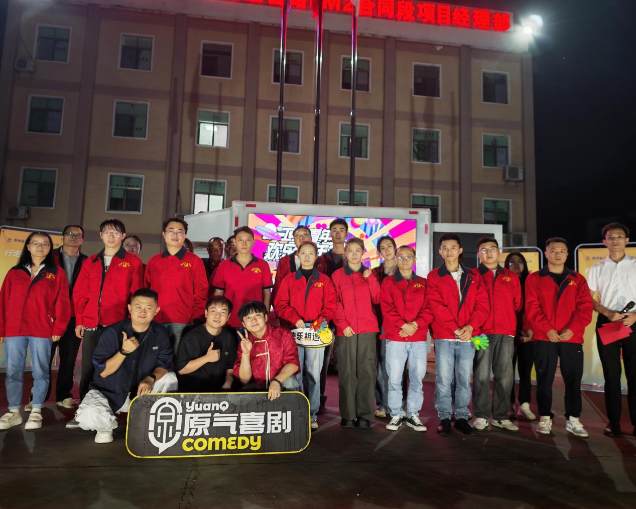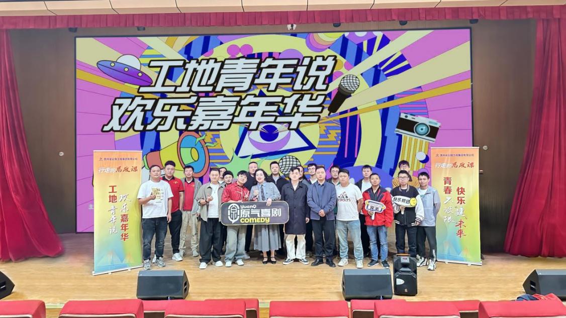 在贵阳市三桥小学二期工程项目,活动在爆笑不断的脱口秀中拉开帷幕,演员将青年职工们熟悉的“搬砖”日常、生活趣事化作幽默素材,迅速点燃全场,拉近了彼此距离。