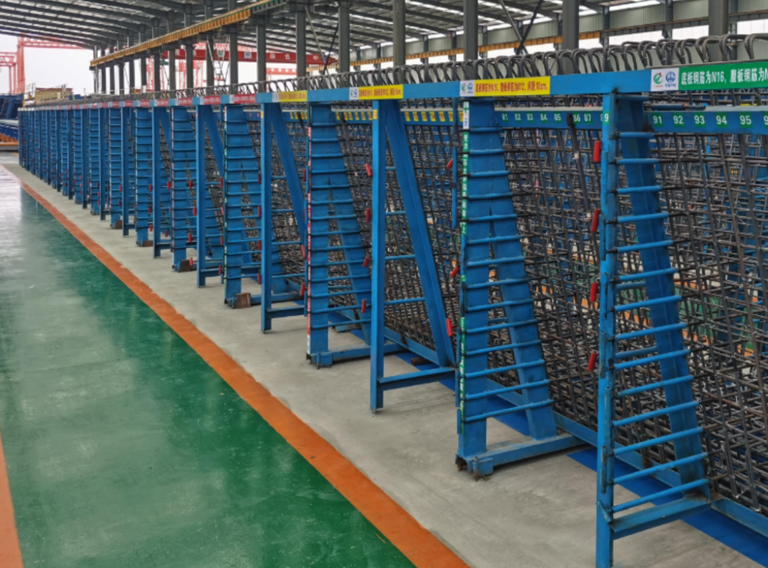 坐标卡槽确保精准定位:在胎架上预设预应力坐标卡槽,腹板箍筋直接固定在胎架上,定位钢筋在卡槽内焊接,从源头杜绝波纹管移位。