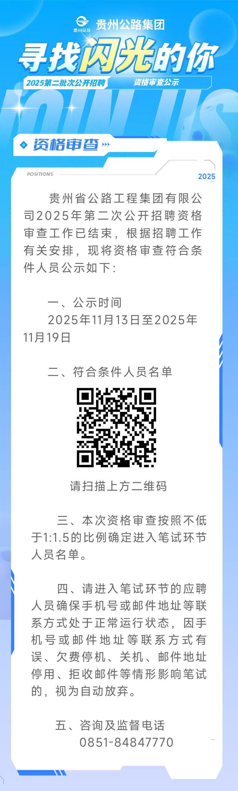 贵州公路集团2025年第二批次公开招聘资格审查公示