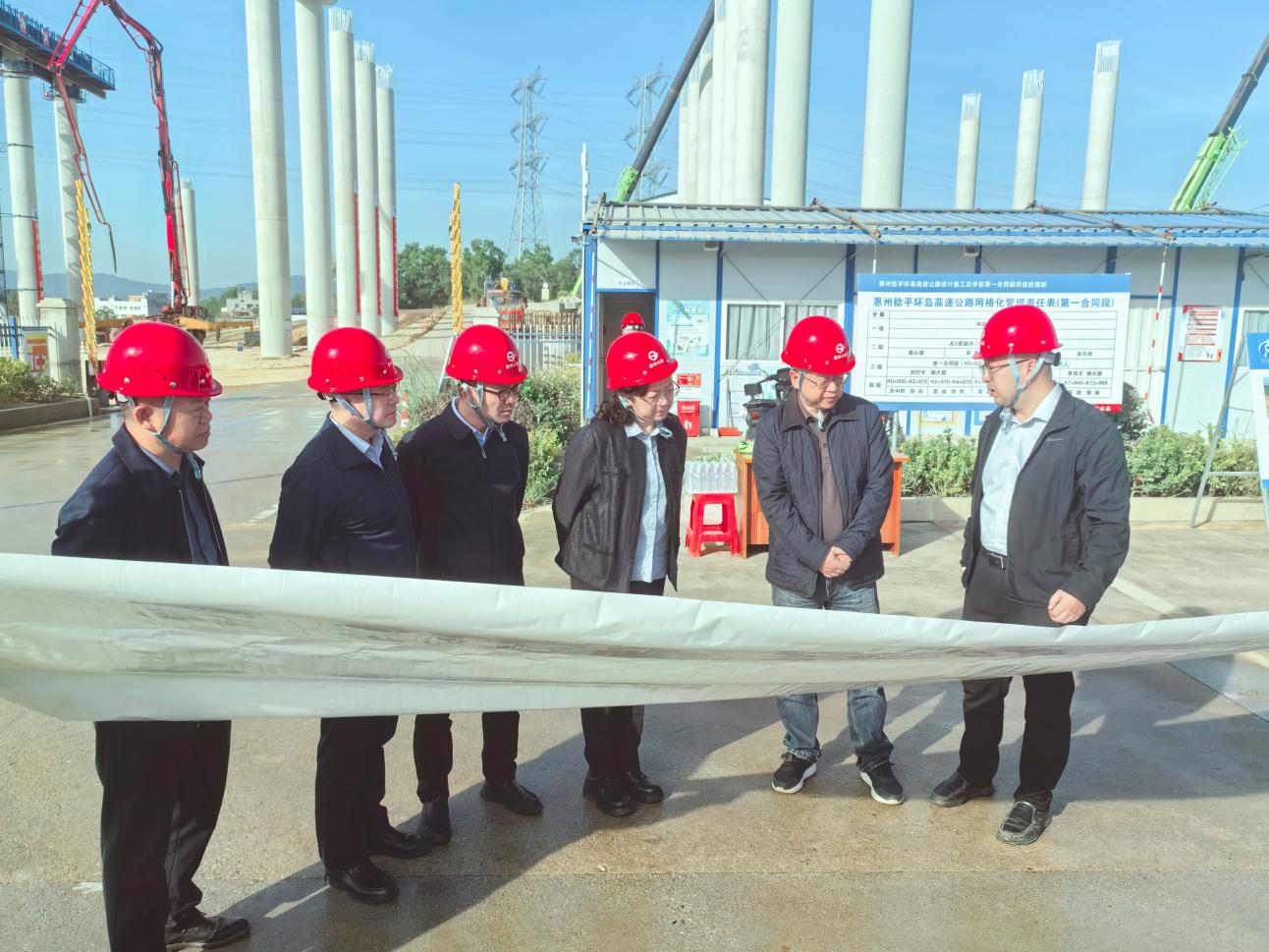近日,贵州公路集团外部董事袁斌、高绚、秦明、廖鹏斌一行赴广东惠州,对贵州公路集团第六分公司承建的稔平环岛高速公路1标项目开展实地调研,并为集团在大湾区的战略深耕提供指导。