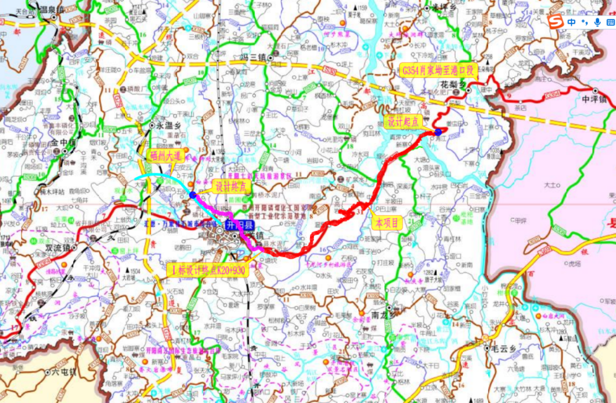 开阳港洛旺河港区至开阳县城集疏运公路起于开阳县花梨镇青江村,终于分水垭处与科技大道平交,路线全长31.534公里,主要采用二级公路标准建设,局部受基本农田限制路段采用三级公路标准进行路面改造。全线共设置桥梁7座,隧道1座,涵洞78道,平面交叉口83处。本次中标的1标段全长 22.2公里,计划工期24个月。该项目将有力提升开阳港区与县城之间的交通衔接能力,进一步促进区域物流畅通与经济发展。