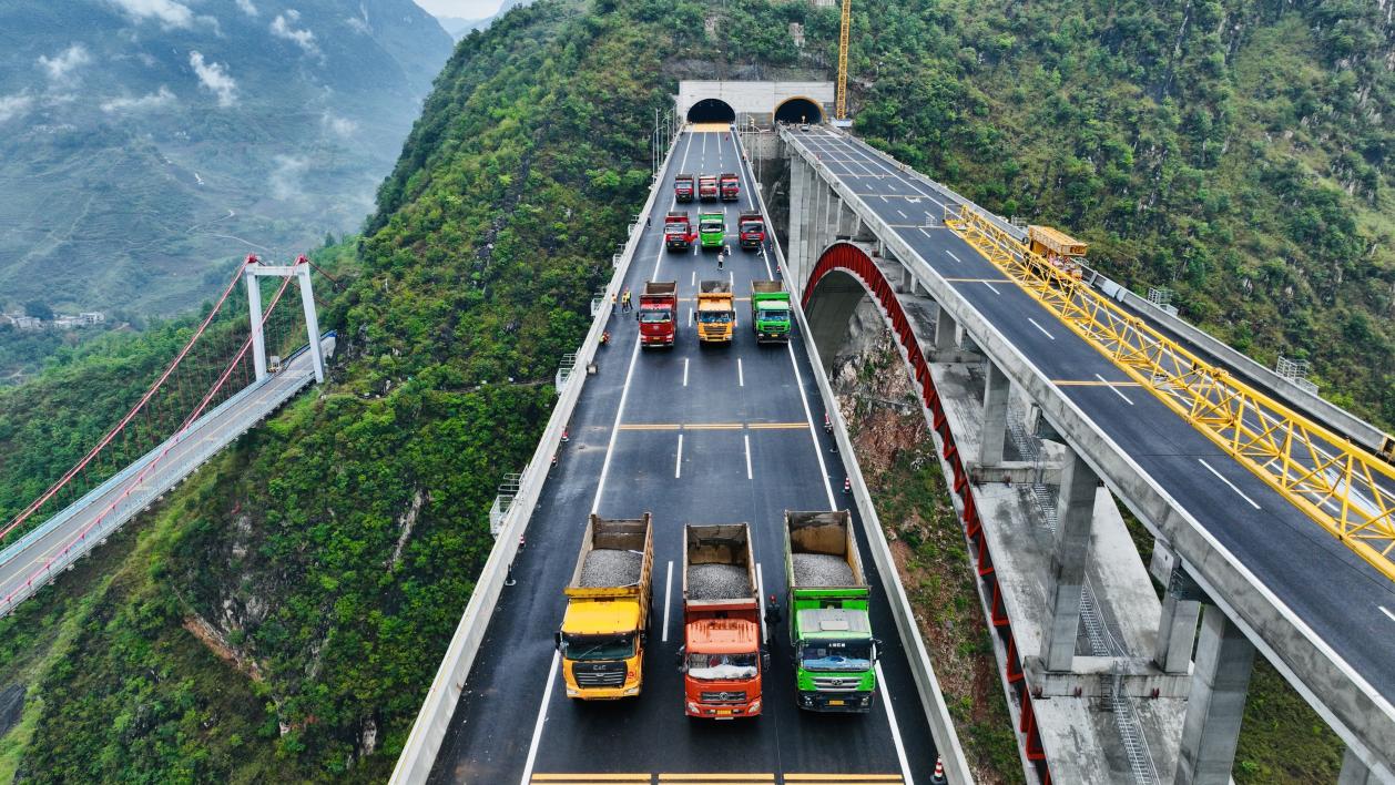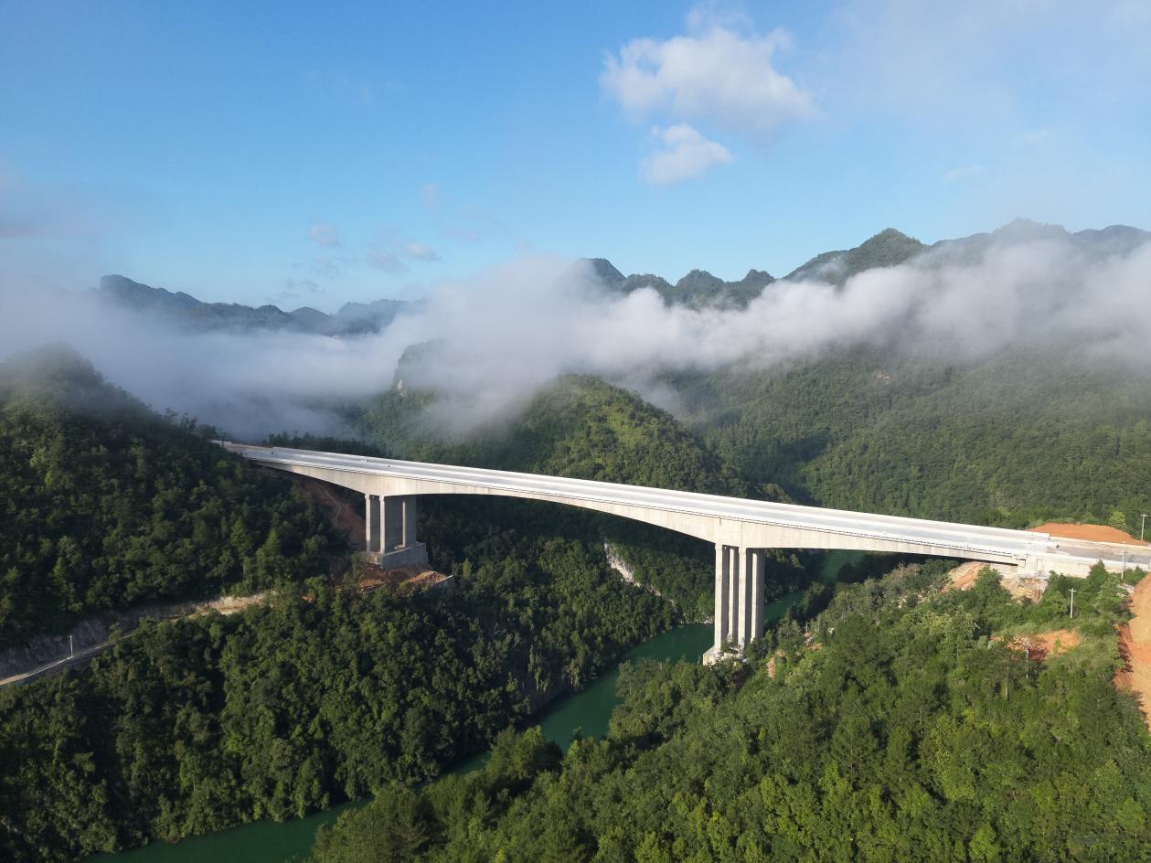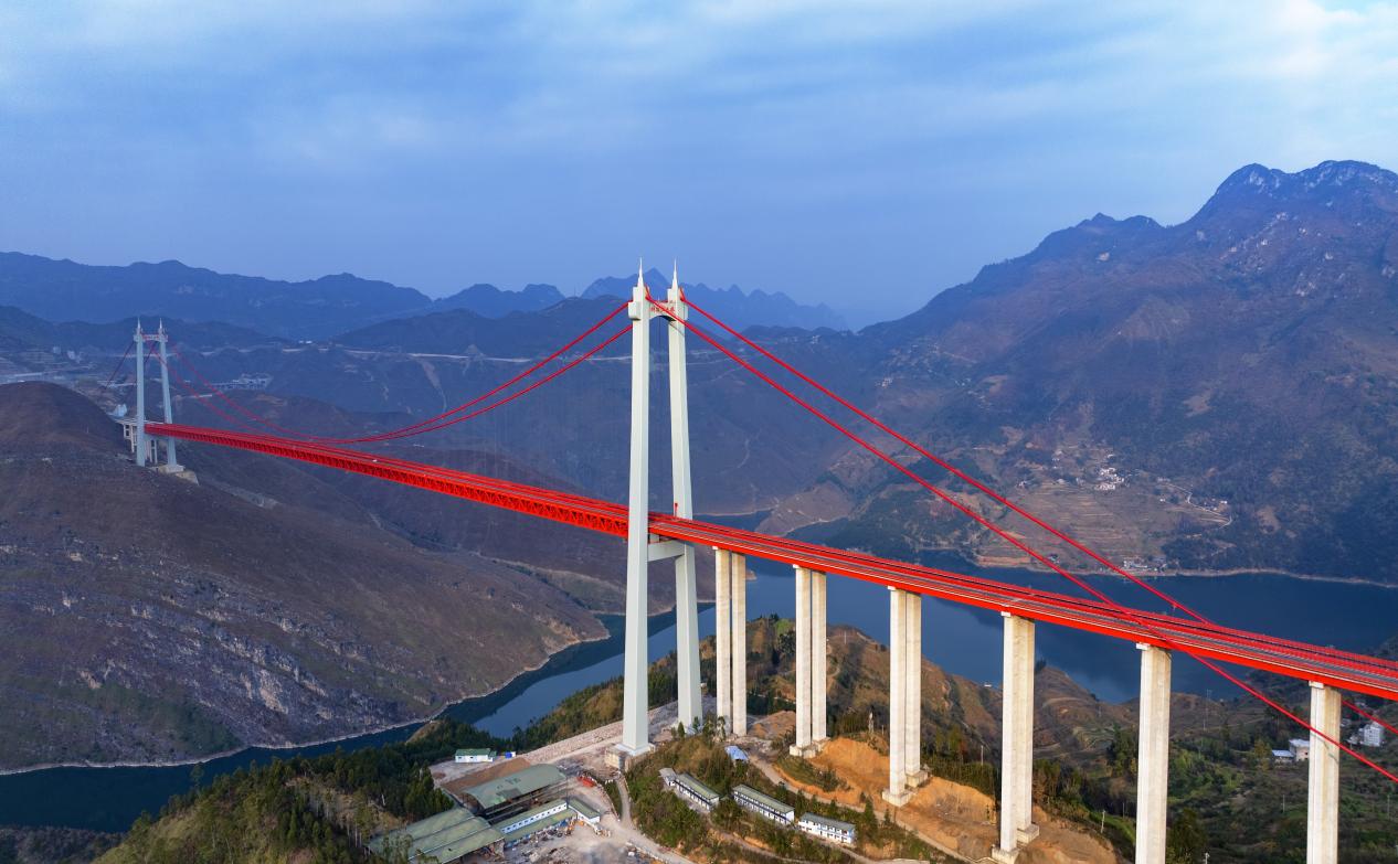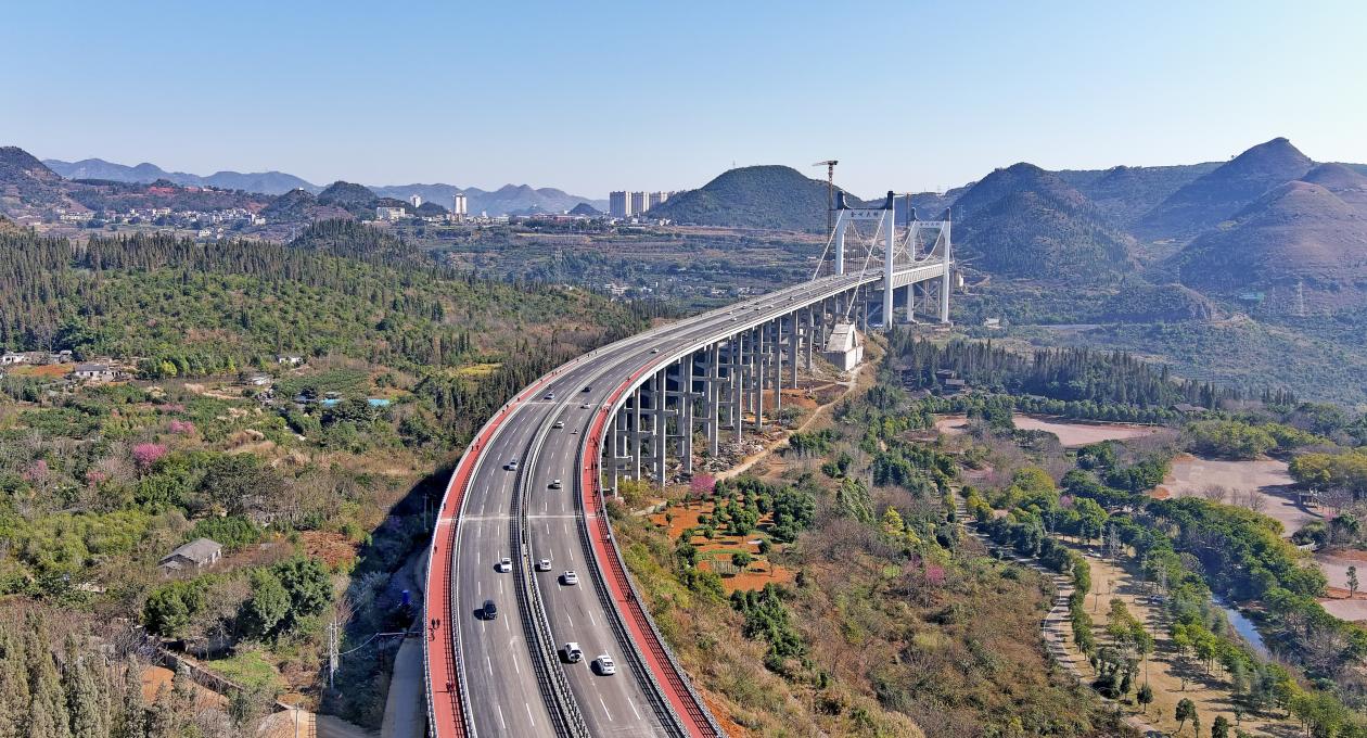 - 2月14日,贵州公路集团参建的纳雍至晴隆高速公路牂牁江北收费站至新寨河枢纽互通段建成通车。(图:牂牁江大桥)