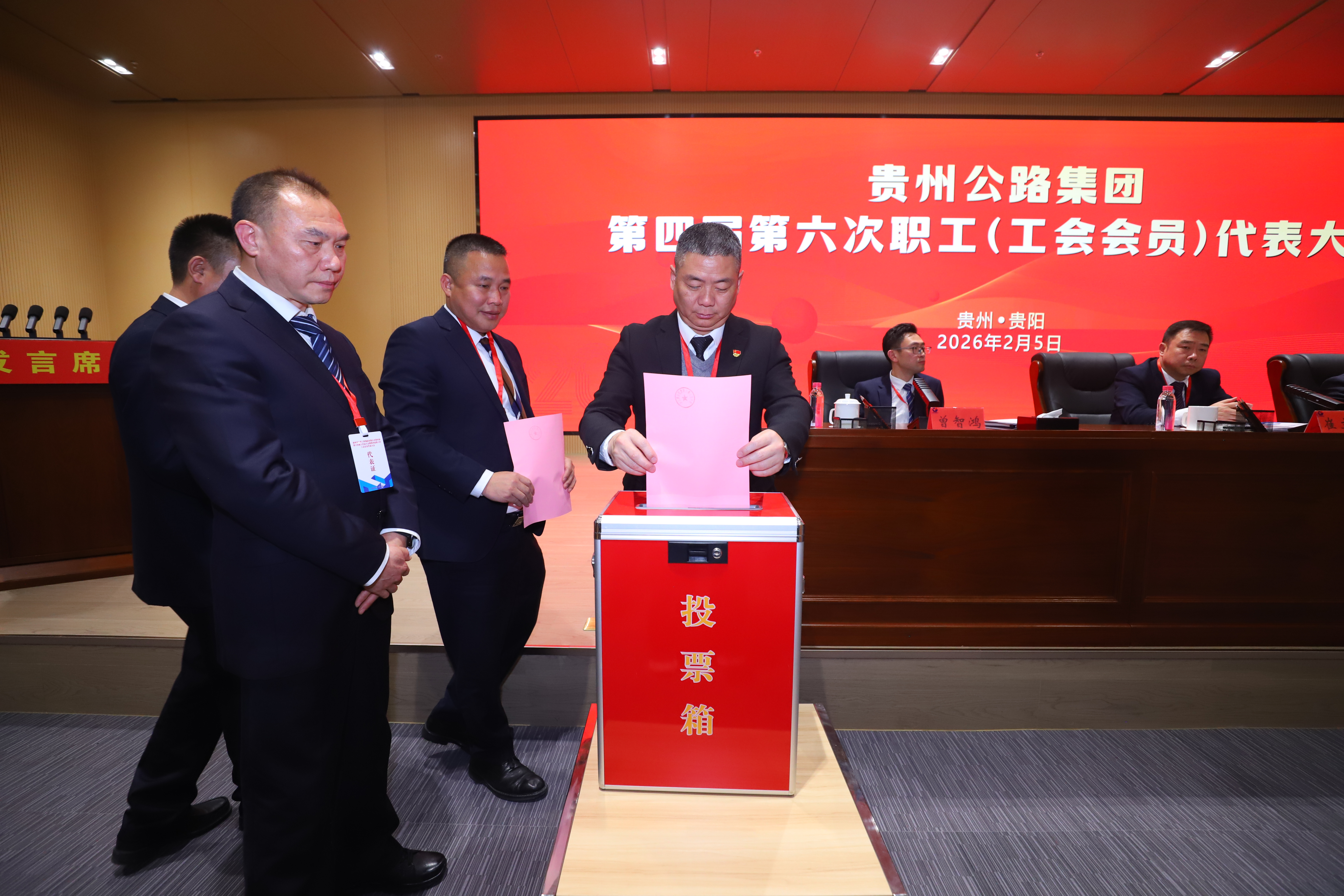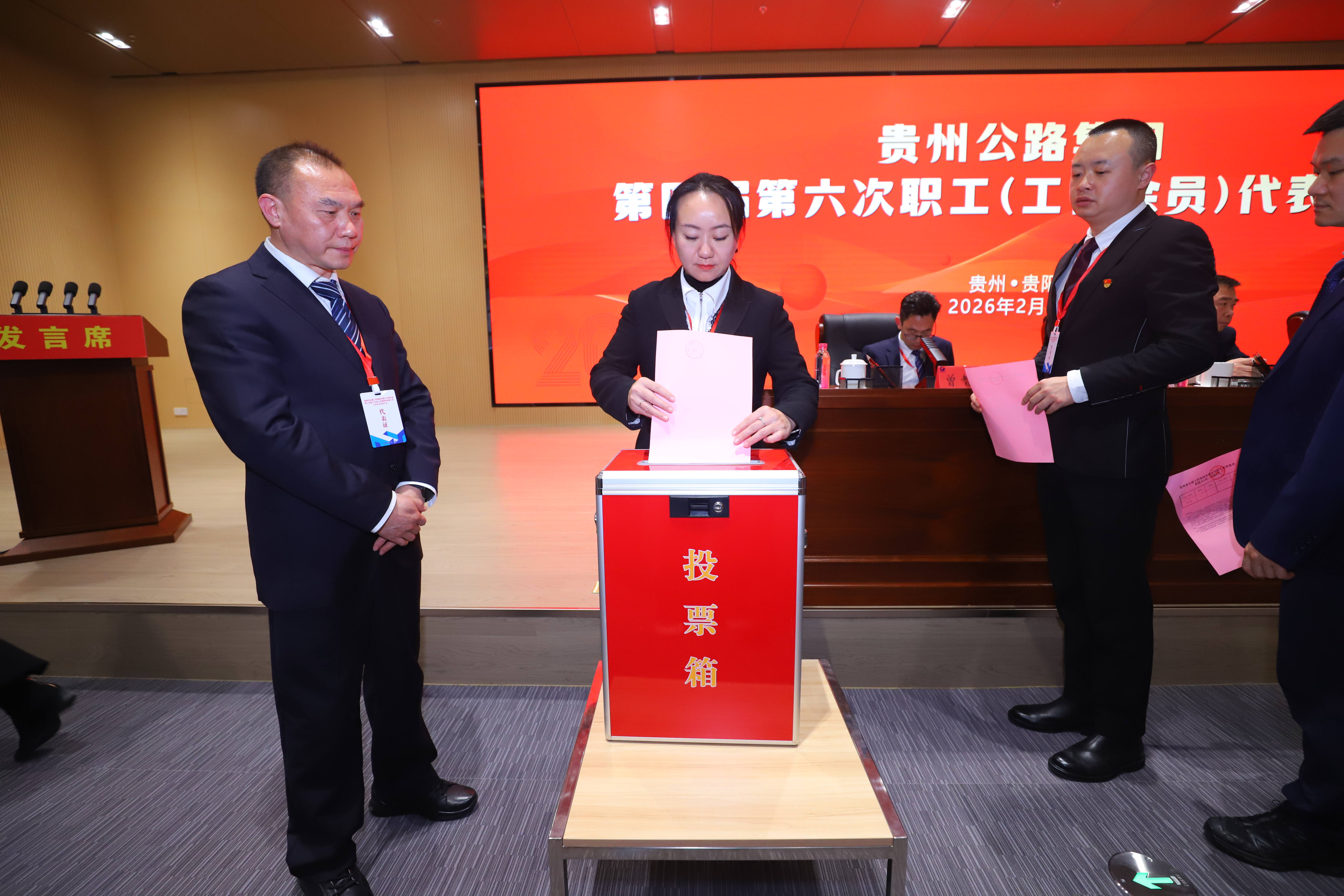 2月5日,贵州公路集团第四届第六次职工代表大会暨工会会员代表大会胜利召开。大会全面总结“十四五”和2025年工作成绩,分析研判当前面临的新形势,科学谋划“十五五”发展蓝图,安排部署2026年重点任务,团结动员全体干部职工,坚定信心、砥砺奋进,开创新篇章,以高质量党建引领集团公司高质量发展。
