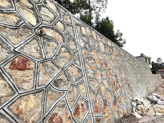 K08+920~K08+980左侧上挡墙采用坐浆法分层砌筑,砌缝砂浆填充饱满,分段位置已设沉降缝,砌体外露面应平整美观,勾缝自然美观