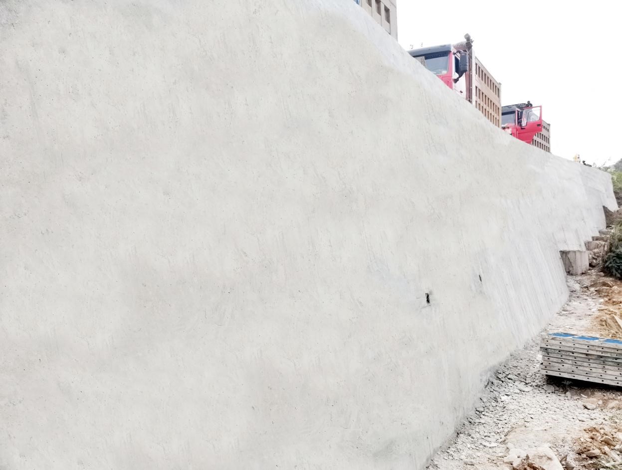 K07+704~K7+740右侧衡重式路肩墙混凝土施工分层浇筑,施工缝及片石埋放符合施工技术规范,沉降缝及伸缩缝竖直、贯通、平齐、不漏水,填充密实,墙身表面平整无麻面。