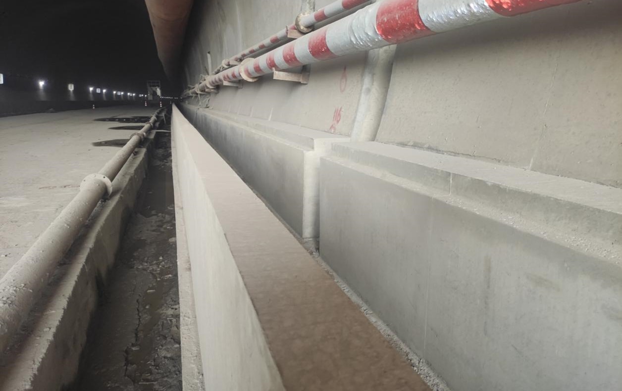 4、整体模筑台车模板:电缆沟、排水暗沟施工采用轨行式液压水沟电缆槽台车模板系统,施工中可有效防止出现漏浆、跑模、爆模现象,确保了结构的整体性、线条流畅性以及砼外观质量。