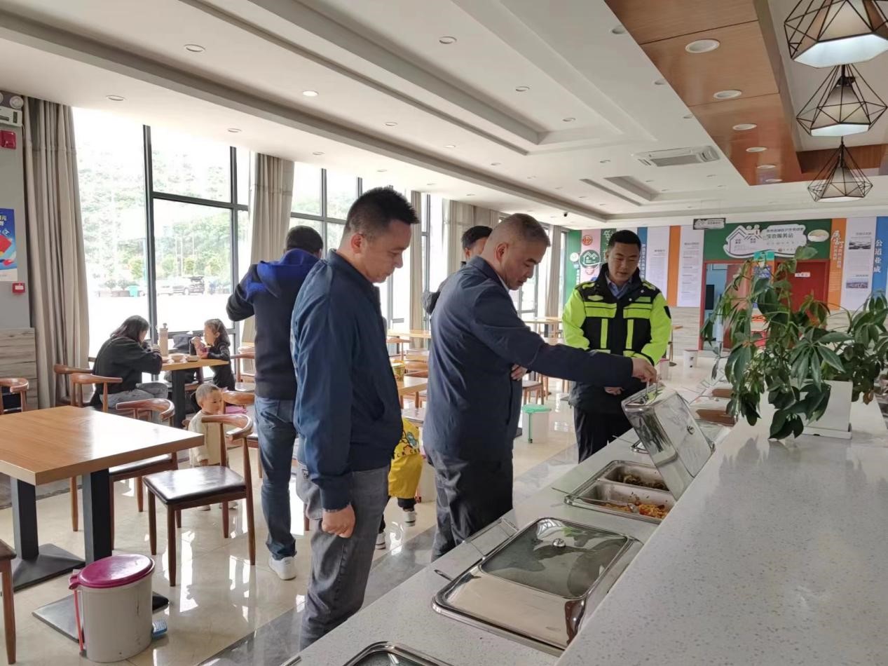 检查组查看服务区餐食准备情况